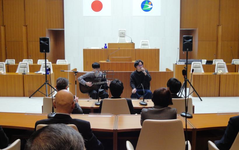 軽音サークルの学生が胎内市議場コンサートで演奏しました