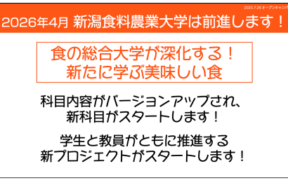 新潟食料農業大学は、2026年、2027年と、 あなたの好奇心のために"進化”し続けます。
