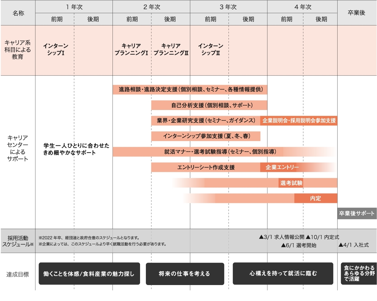 「充実したキャリア系科目による教育」と「キャリアセンターによるきめ細やかなサポート」を提供します。