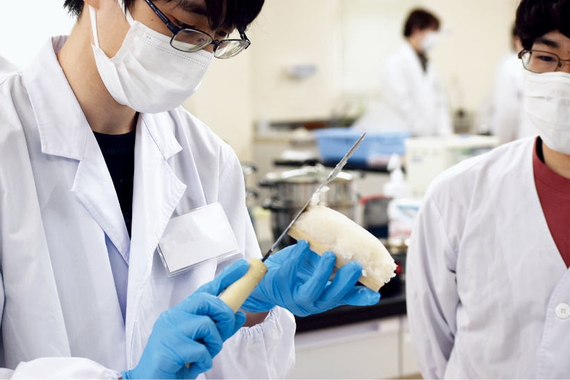 本学は、食・農・ビジネスの各分野で教育・研究実績豊富な教員に加え、大手食品メーカーや大手企業での実務経験豊富な教員が複数名在籍しています。これらの教員が各専門分野の授業を担当し、実社会に活かせる実践的な知識・技術を身につける、実践力重視の授業を展開しています。