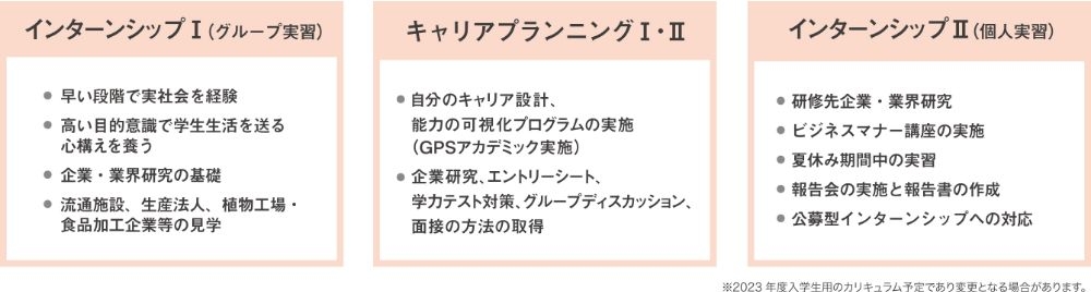 「充実したキャリア系科目による教育」と「キャリアセンターによるきめ細やかなサポート」を提供します。