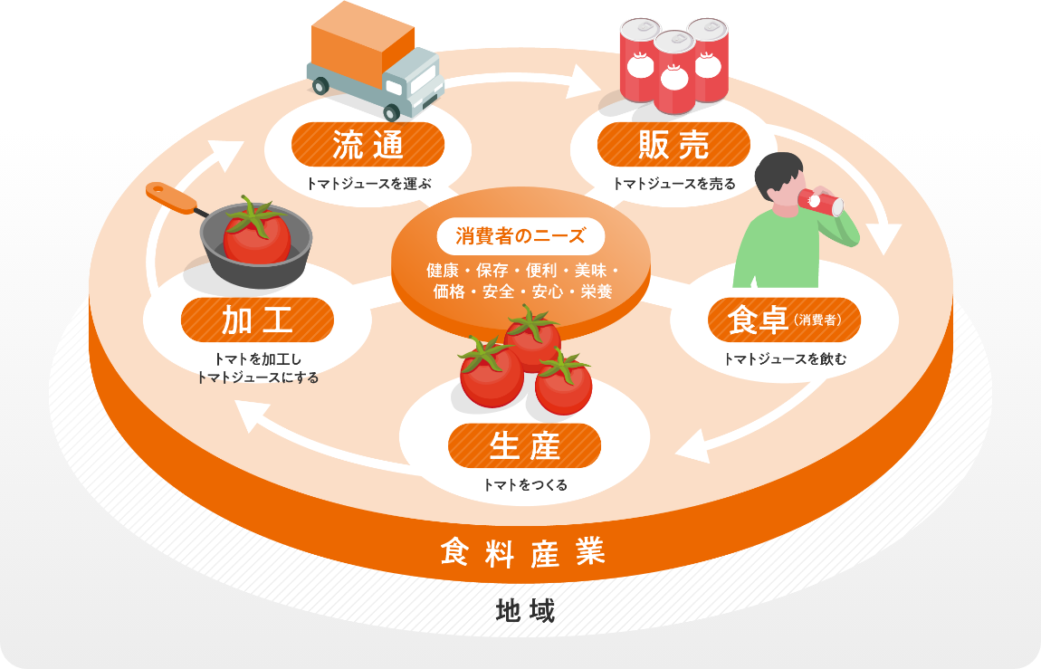大学では一般的に、農業は「農学部」、食品・栄養は「栄養学部」、経済は「経済学部」などの学部に分かれて学びますが、食料産業学部 食料産業学科は1学部で農業~経済、そして食卓まで学ぶことができます。
