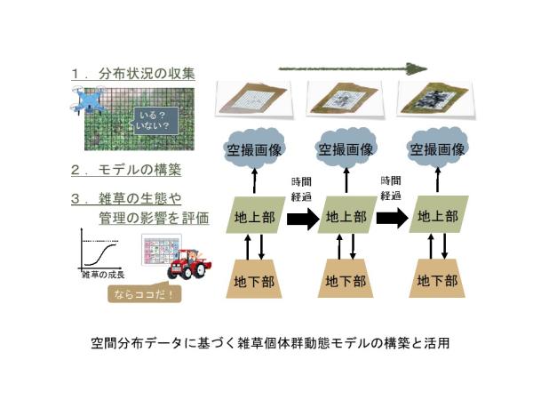 リモートセンシングと画像解析技術の進歩により、高い精度での雑草の検出が可能になってきました。これは、ピンポイントでの除草にとって重要な技術です。また、空間分布情報をもとに雑草の生育や分布の変化をモデリングすることで、環境条件や防除作業の影響を定量化することもできます。これらの技術を駆使し、雑草の個体群動態に基づく総合的かつ合理的な防除方法を見出していく所存です。