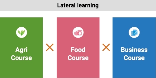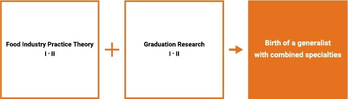 It is also possible to attend lecture subjects in other courses. Lateral study of the food industry in the Agri. Course x Business Course or Food Course x Agri. Course, etc., leads to new technology development and product creation.