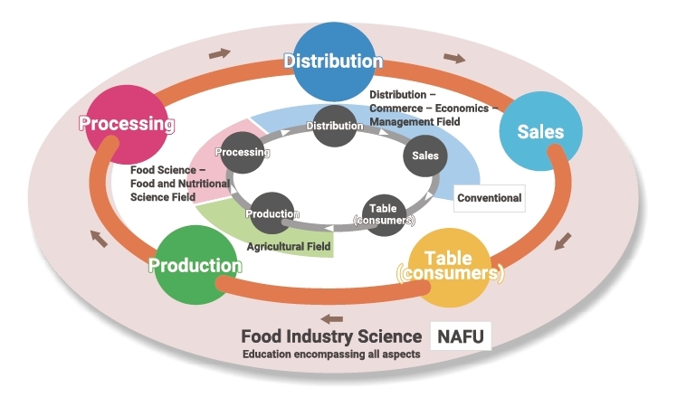 Through integrated study of “agriculture,” the foundation of the local economy, “food,” the basis of people’s health and “business” the generator of new food industries, our university trains world-leading “food generalists.”