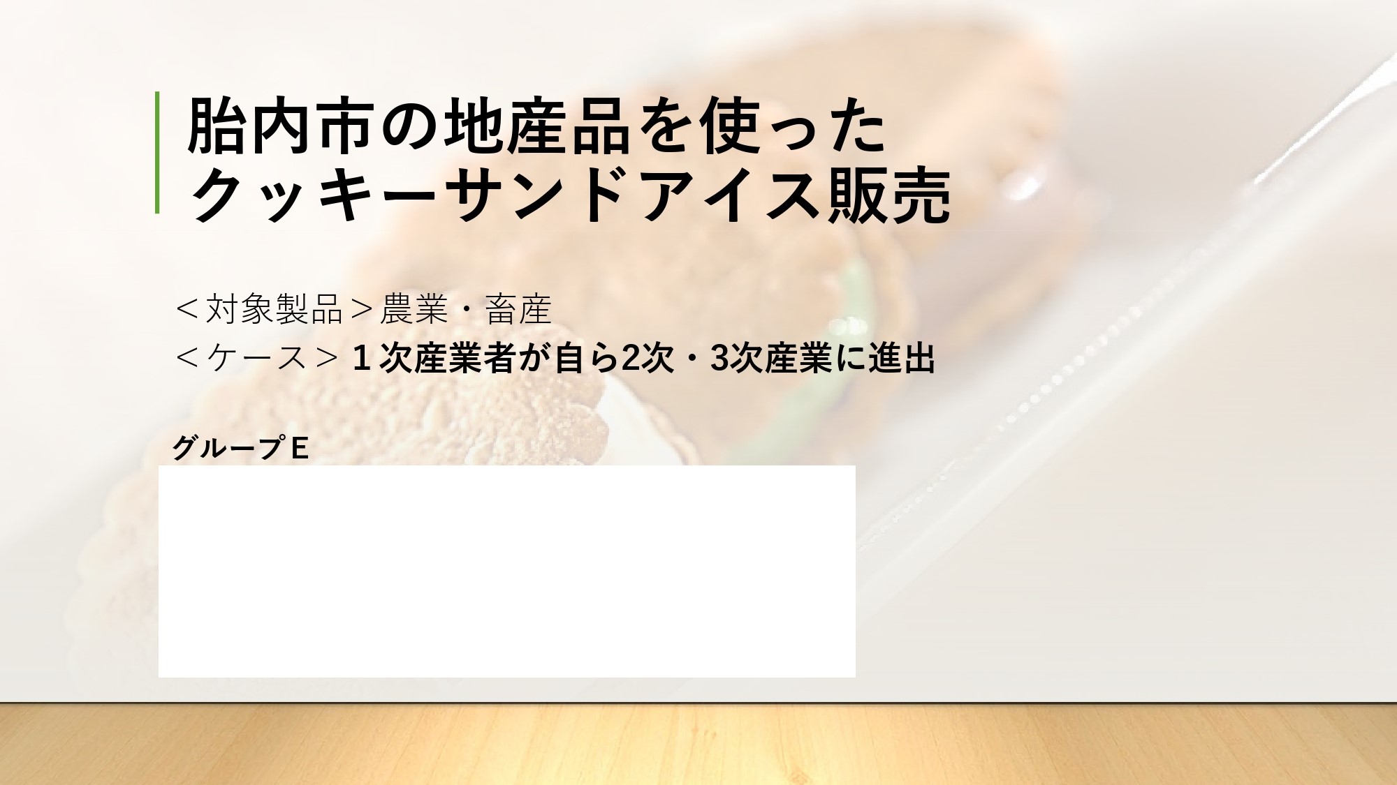 ◆Eチーム『胎内市の地産品を使ったクッキーサンドアイス販売』