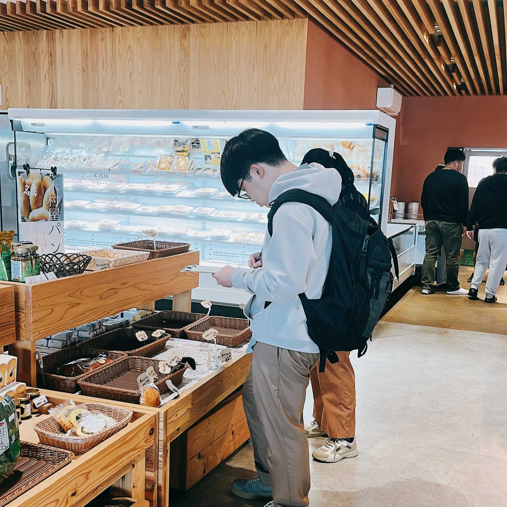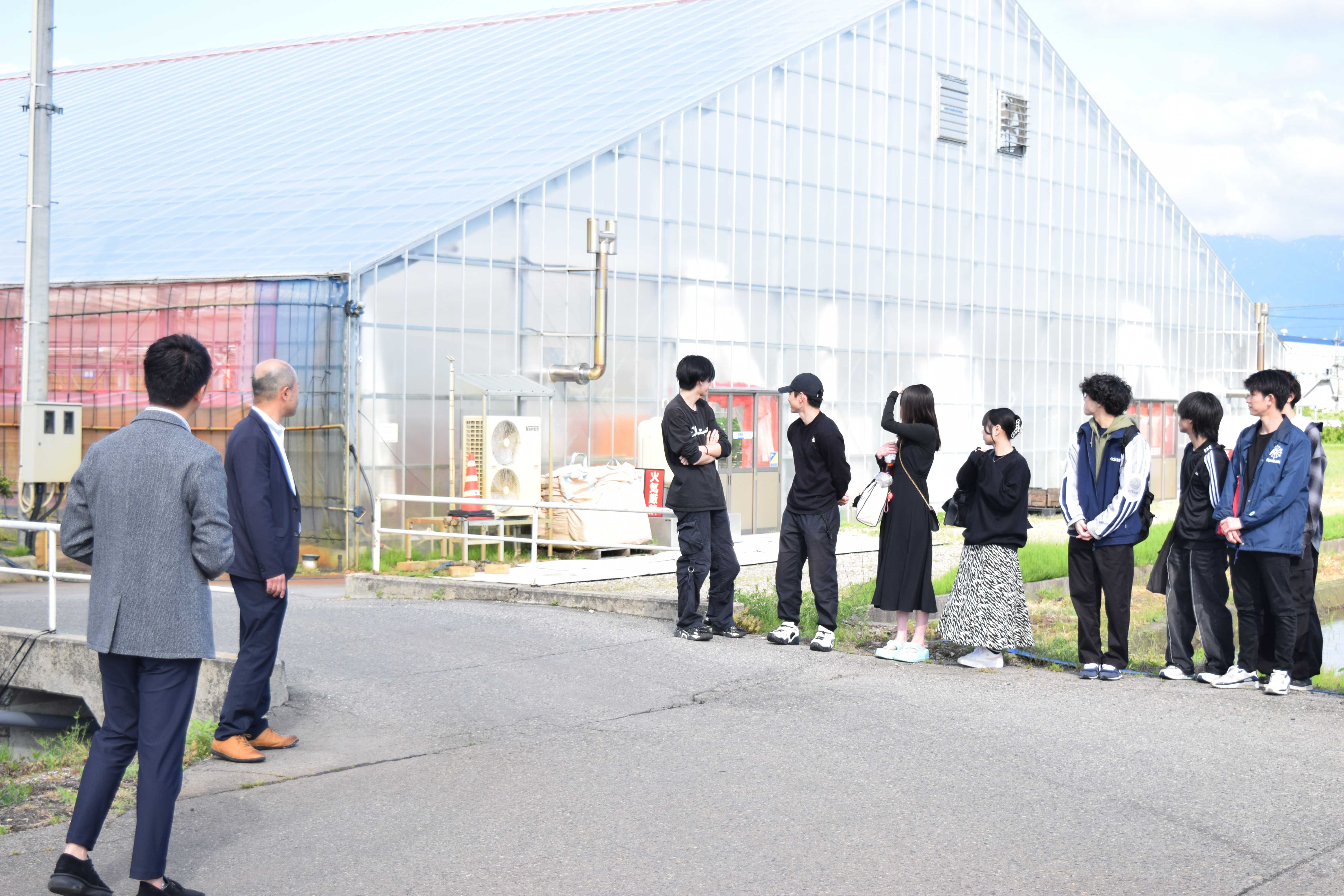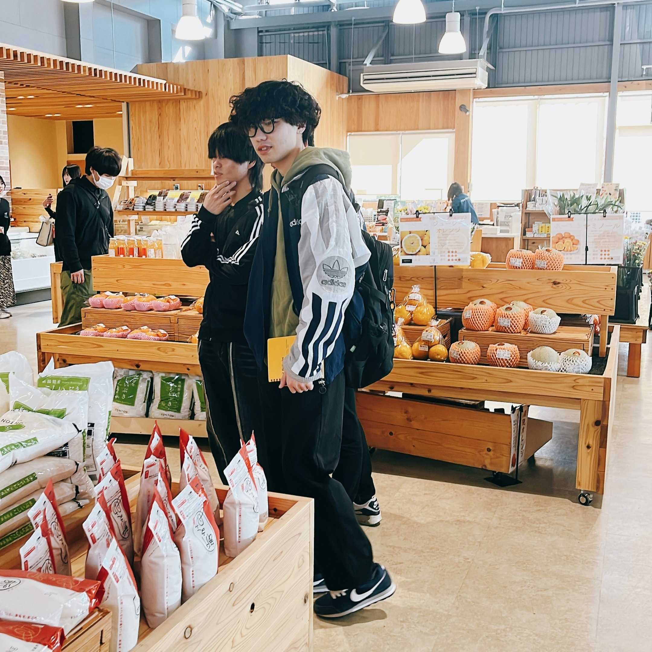 ハウスの後は、直売所を見学しました。木を基調とした店内は天井が高く、野菜や果物だけではなく、お米や新潟県内の加工食品、お惣菜等も販売されています。学生達からは「商品の数が多くて驚きました」「店舗内が明るくて解放感がある!」などの声が聞かれました。