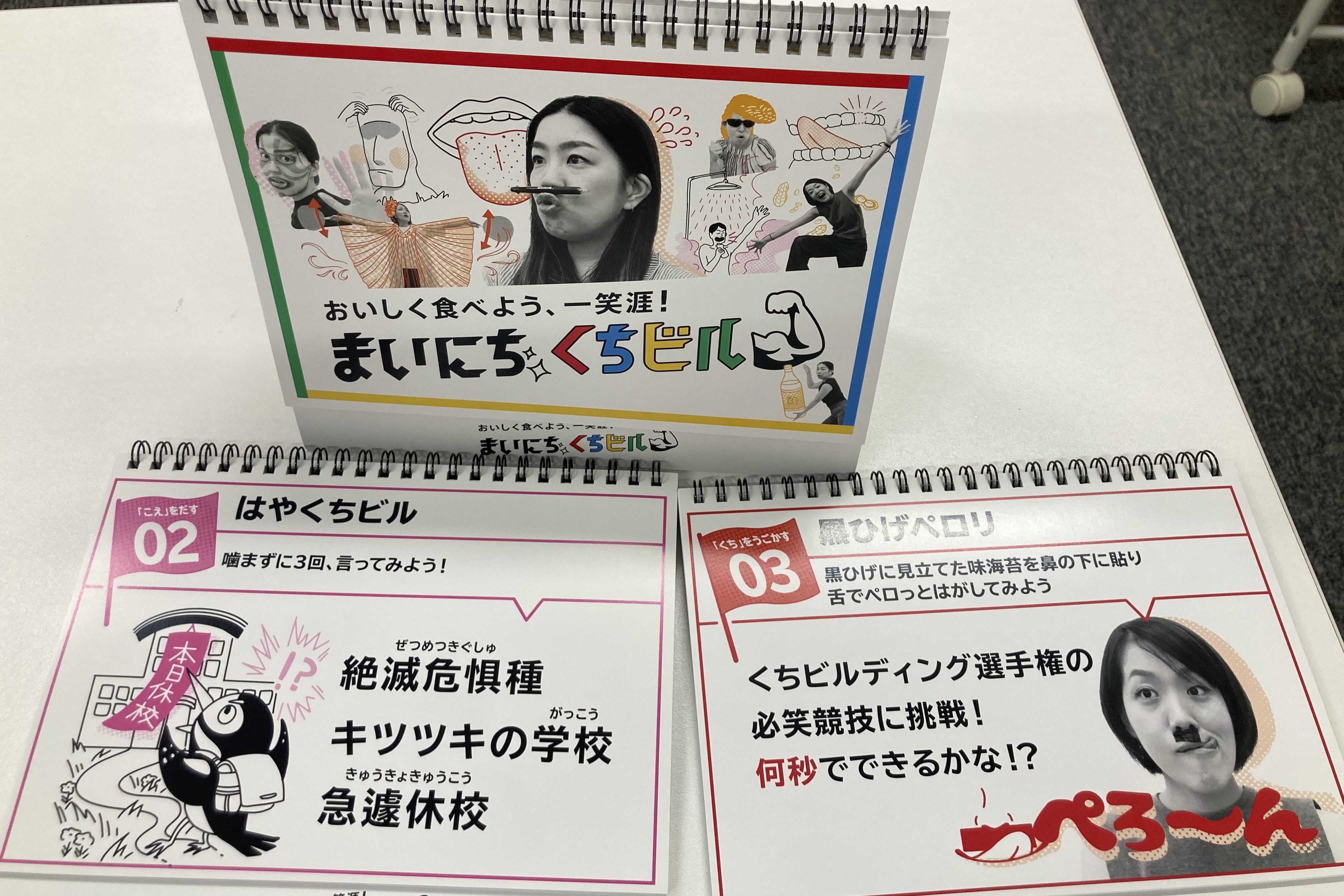 清水先生:「ゆっくりとはっきり話すことを意識すること。発音のしにくいパ行などを特に意識して発音してみることで改善されます。講義の中でも話しましたが、アナウンサーの早口言葉のような練習をすることも効果的です。‘パタカラ‘も、くちビルディングのカレンダーの中にもあります。少しでも口の動かし方に気をつけることが口の筋肉を保つことができます。」
