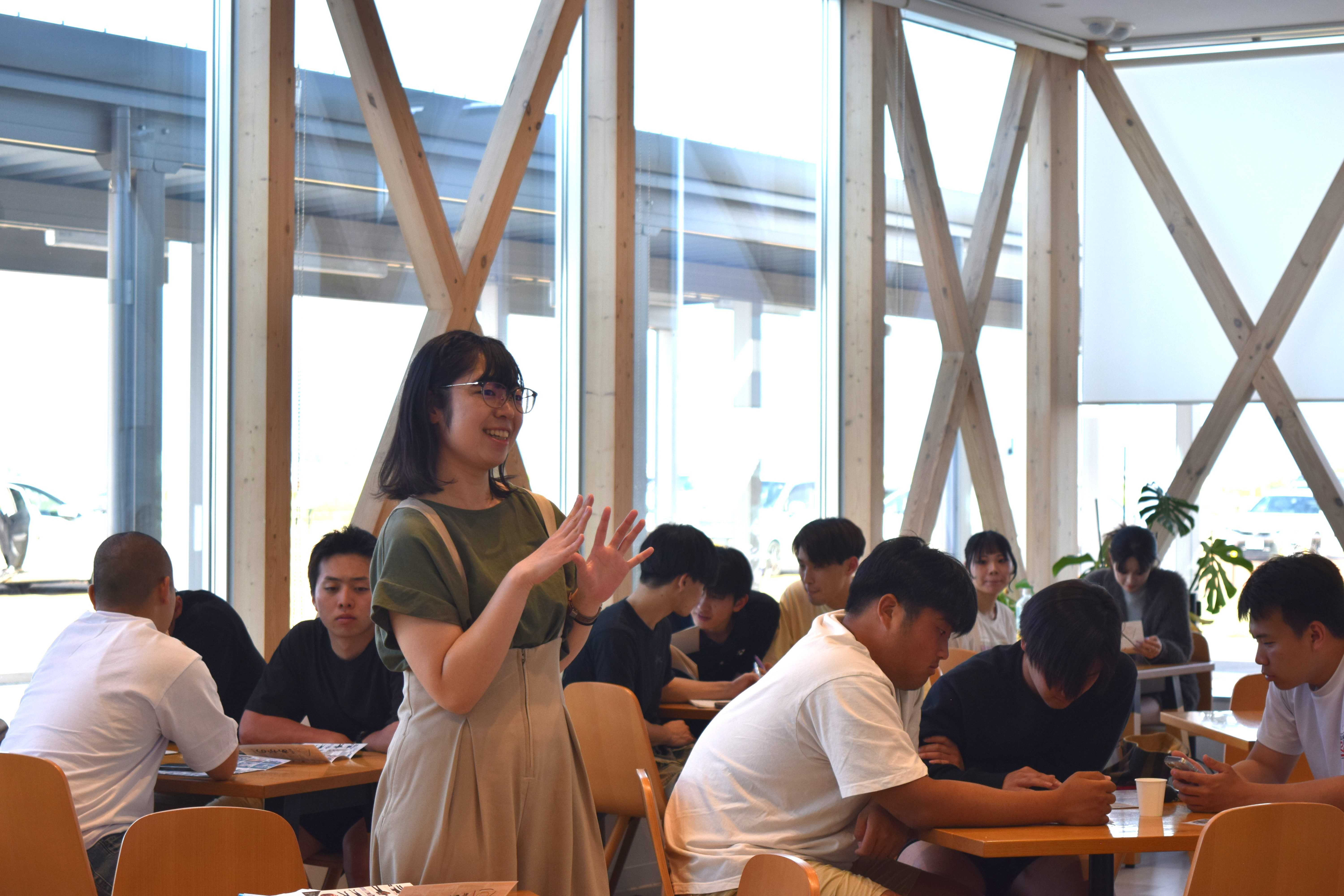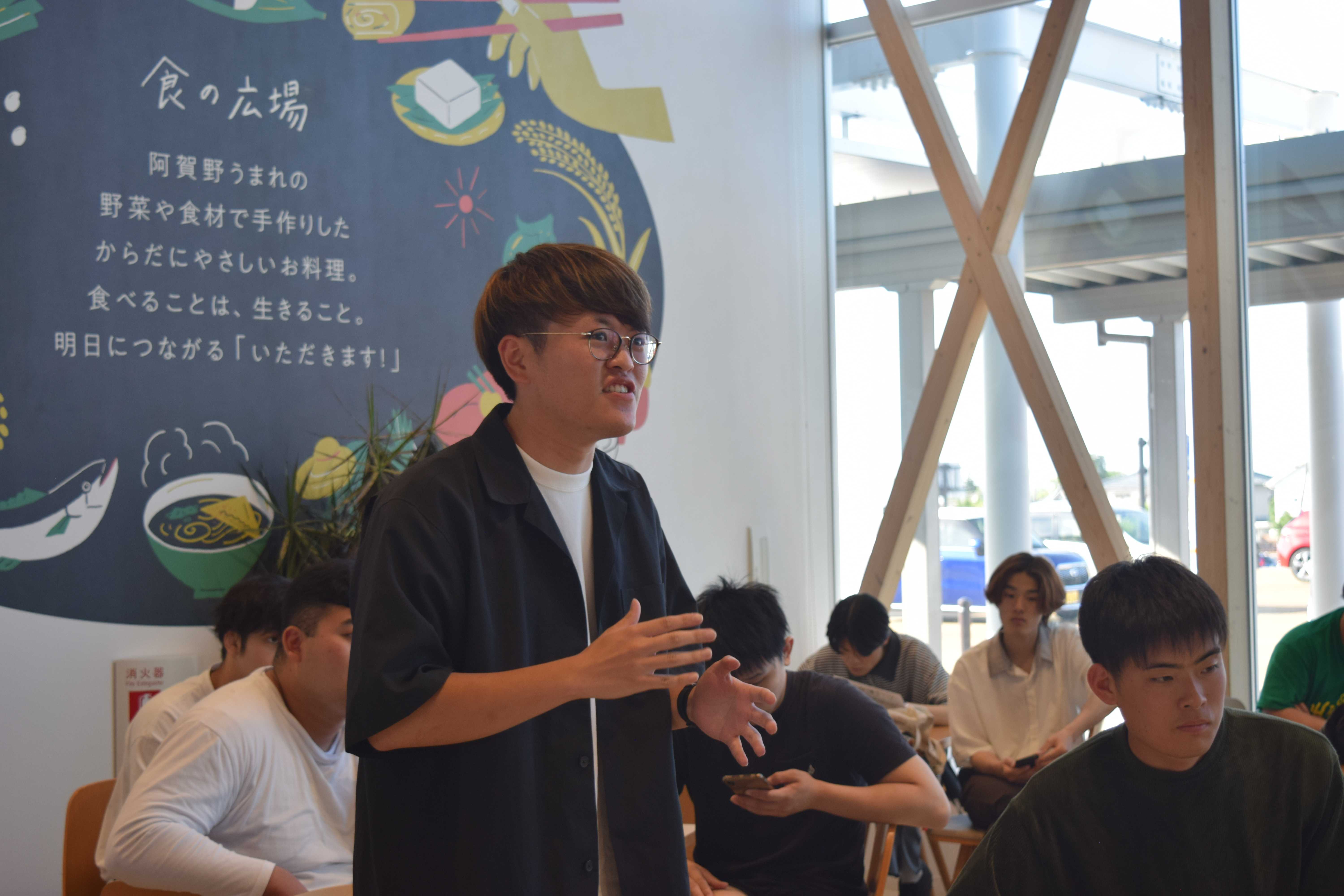 まずは「道の駅あがの」について。初めて訪れるという学生が大半で、丁寧に施設の紹介をしていただきました。
