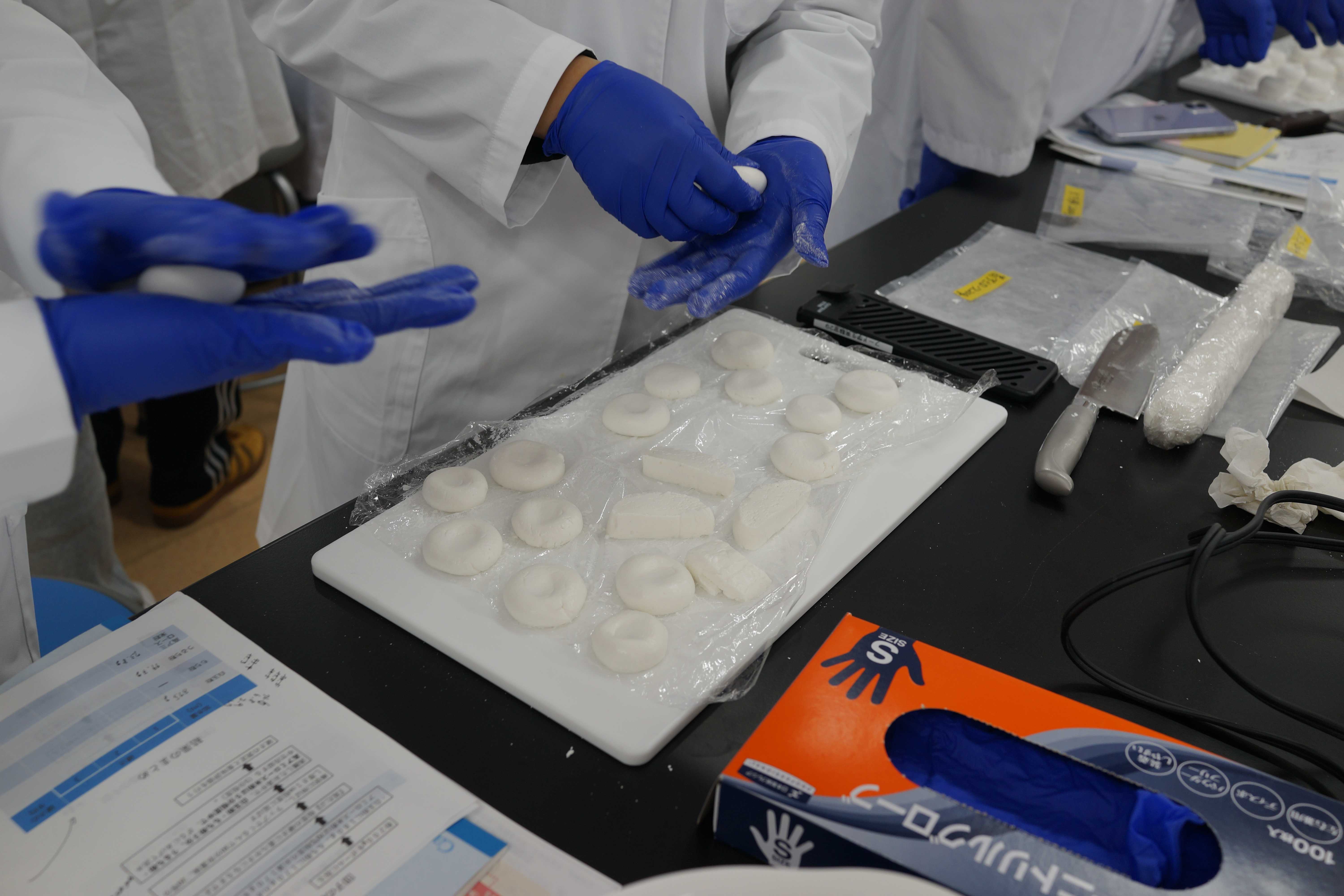 最後に品質評価を行いました!硬さ、弾力、キメの細かさの3つの観点から白玉団子を評価していきます。