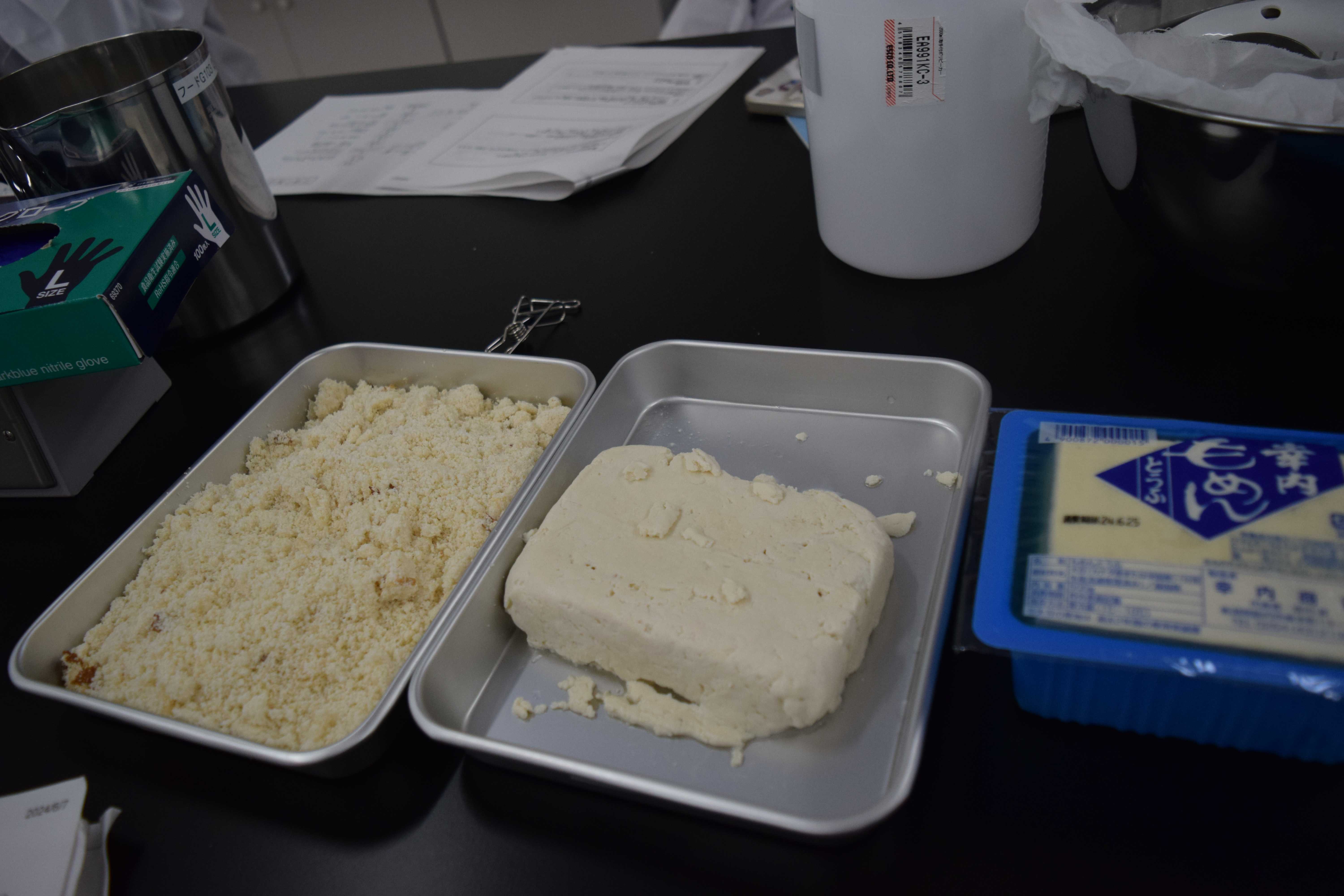 ・作った豆腐は食べる場所によって味が違った。中心部はにがりが取りきれてなかった