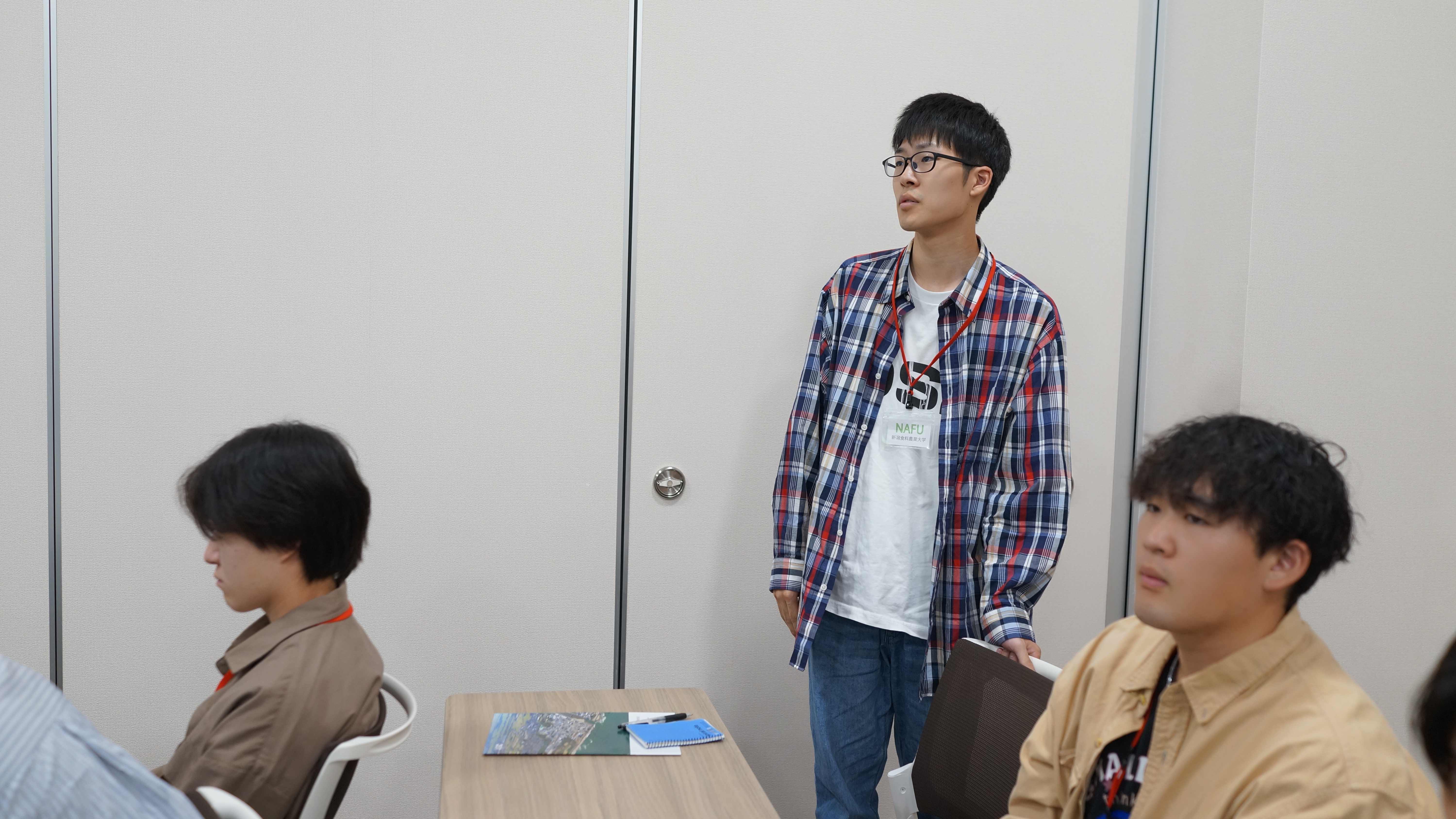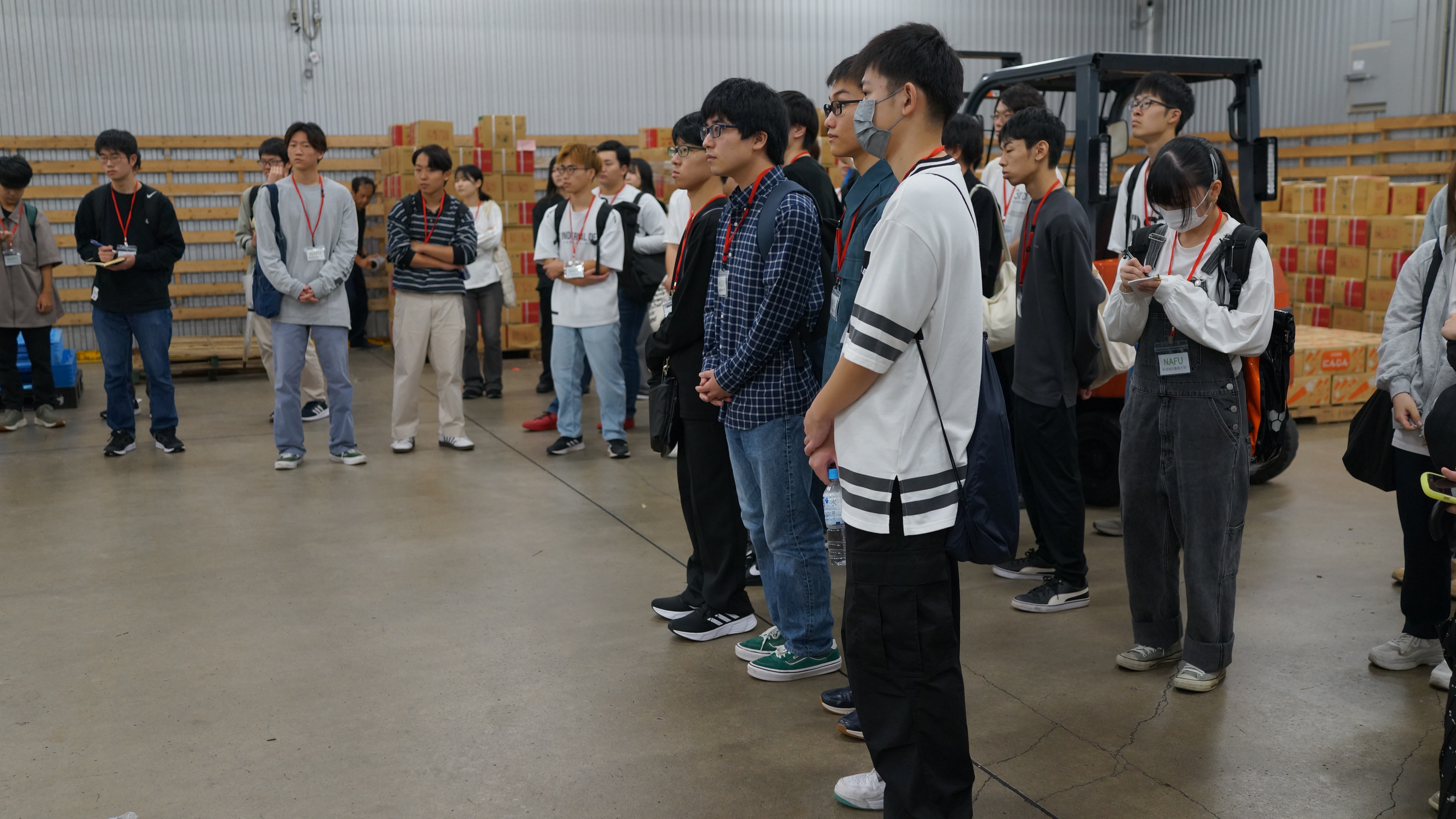 市場内の見学では、異なる温度に保たれた倉庫を実際に体感するほか、昔ながらの取引方法である「せり売」でのハンドサイン、「手やり」の方法について教えていただきました。「同じ数字が続いたときにどうする?」という問いにあれこれ試行錯誤する学生たちでした。