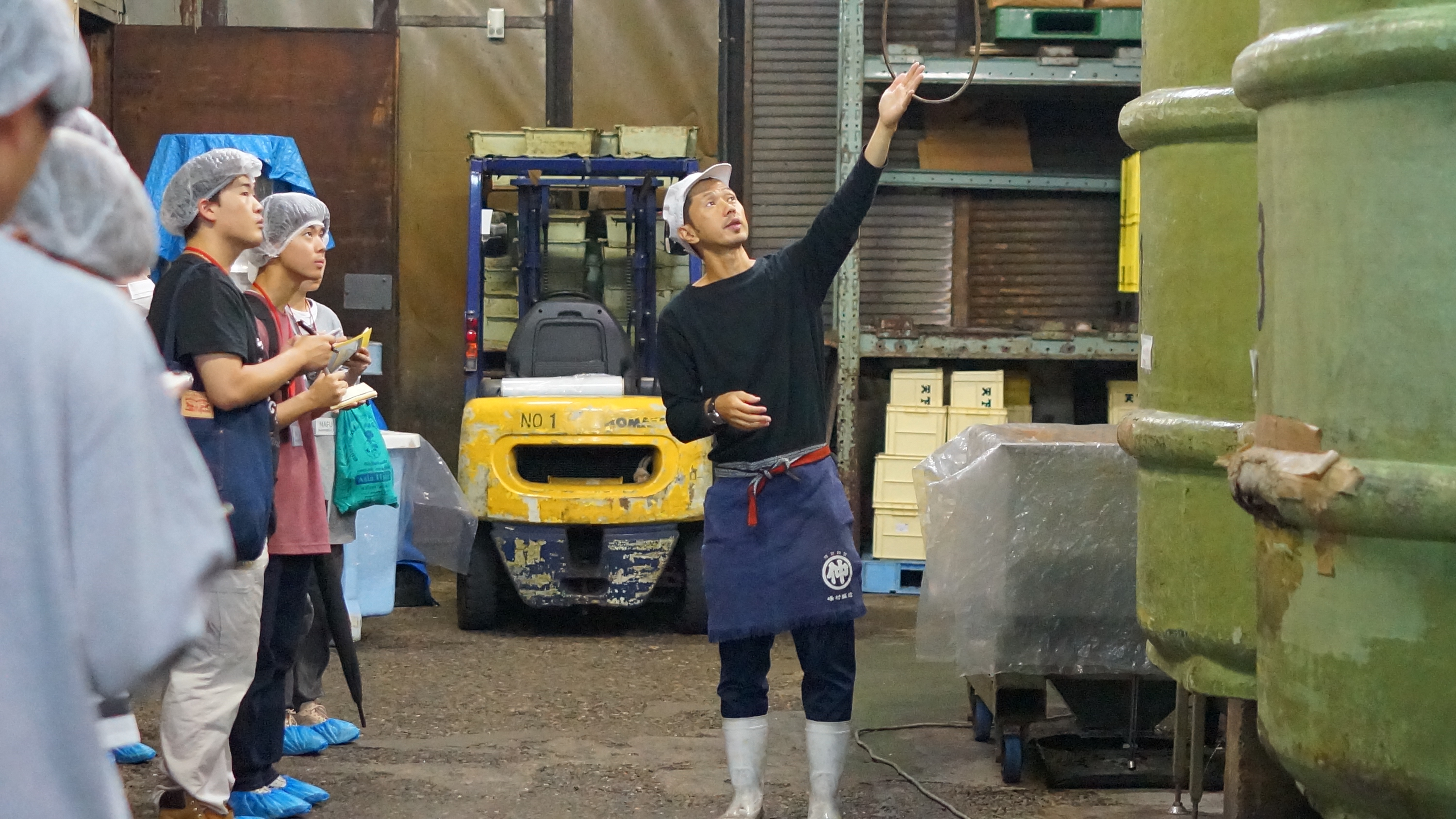 明治38年より続く味噌蔵。昔は冬から夏にかけて手作業で仕込むのが一般的だった味噌づくりが、現代ではどのように作られているのかを見学しました。