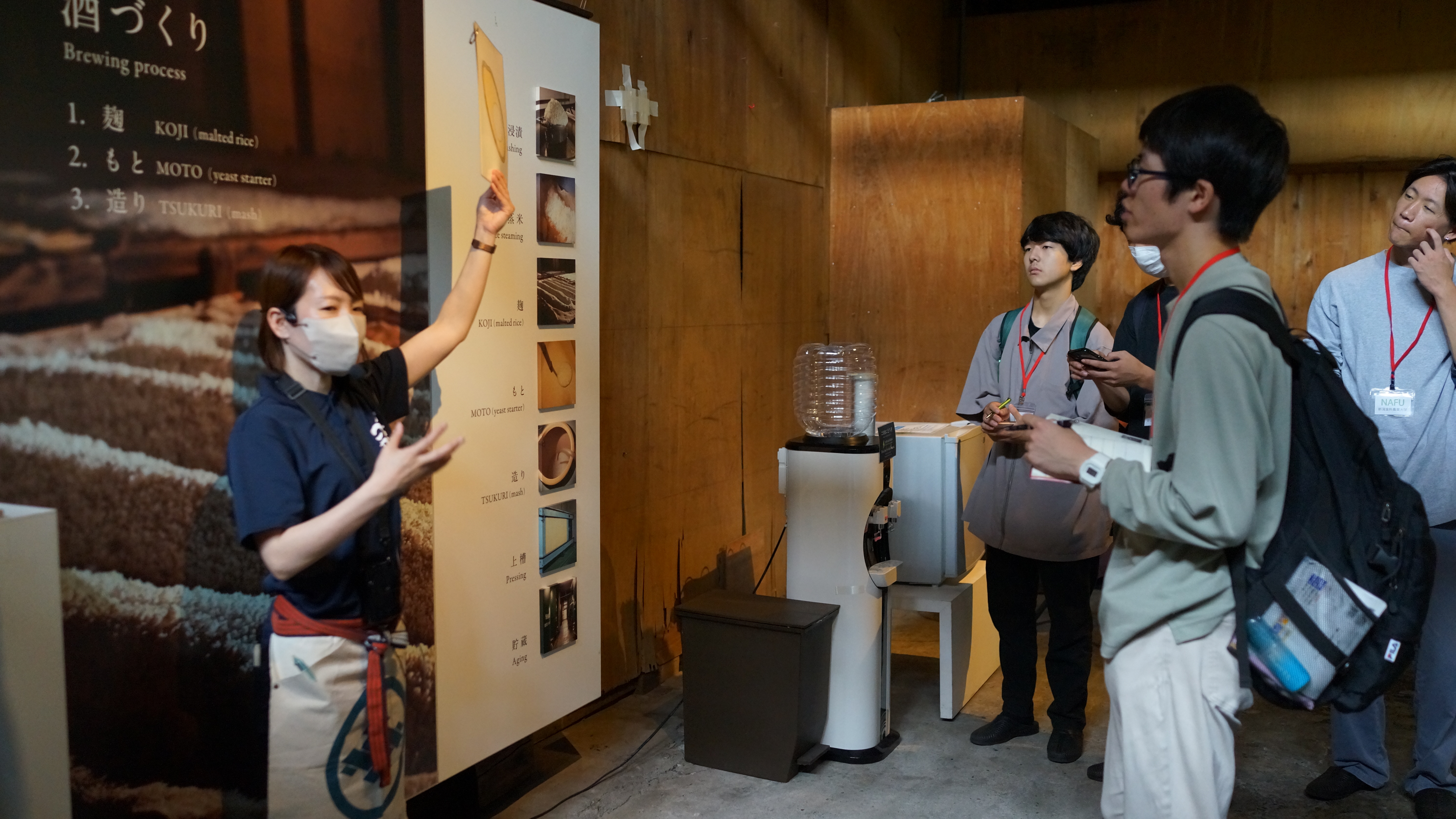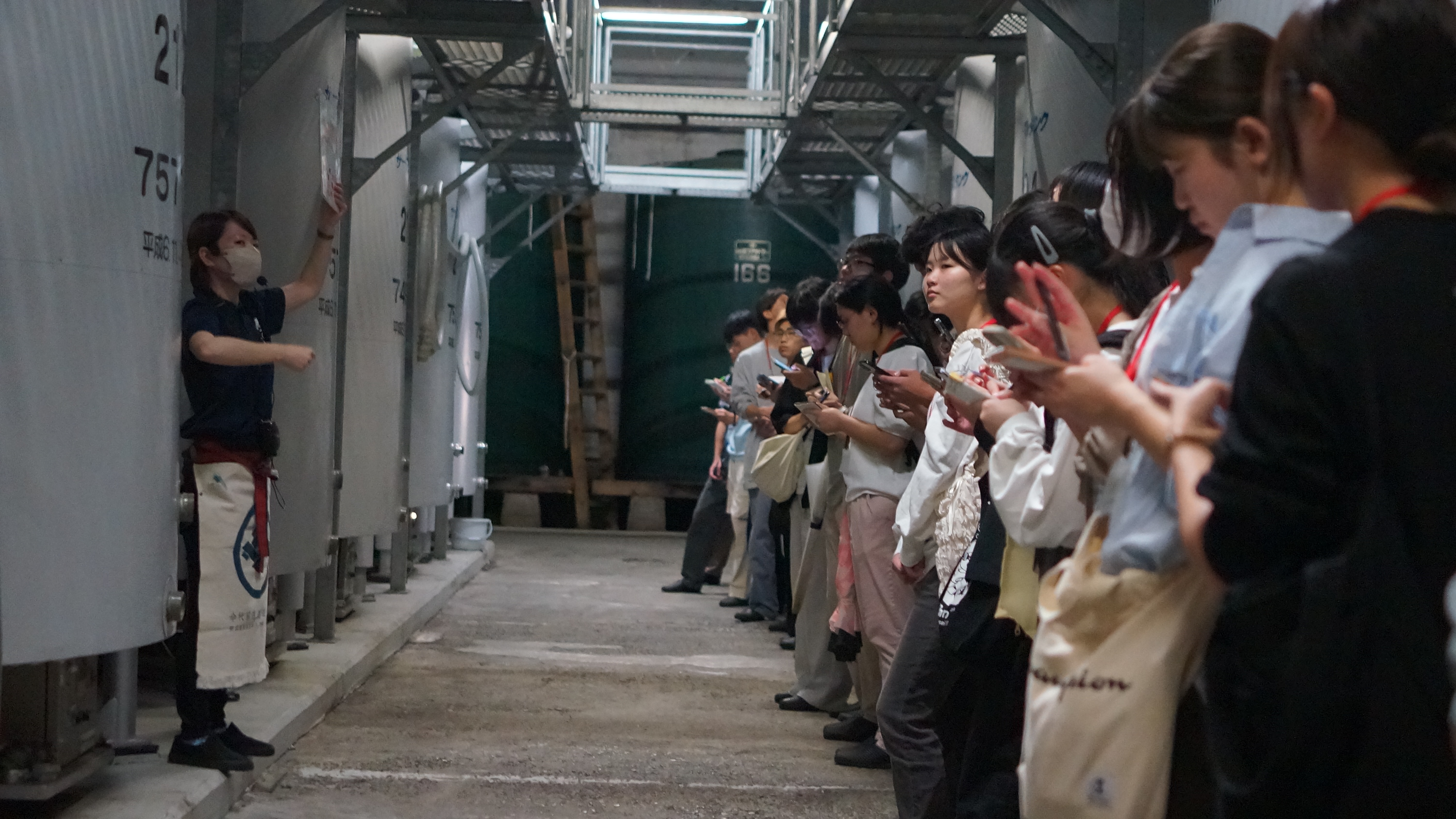 その後、2班に分かれて、本学のフードコースで学ぶことのできる、発酵・醸造分野の企業を訪問しました。
