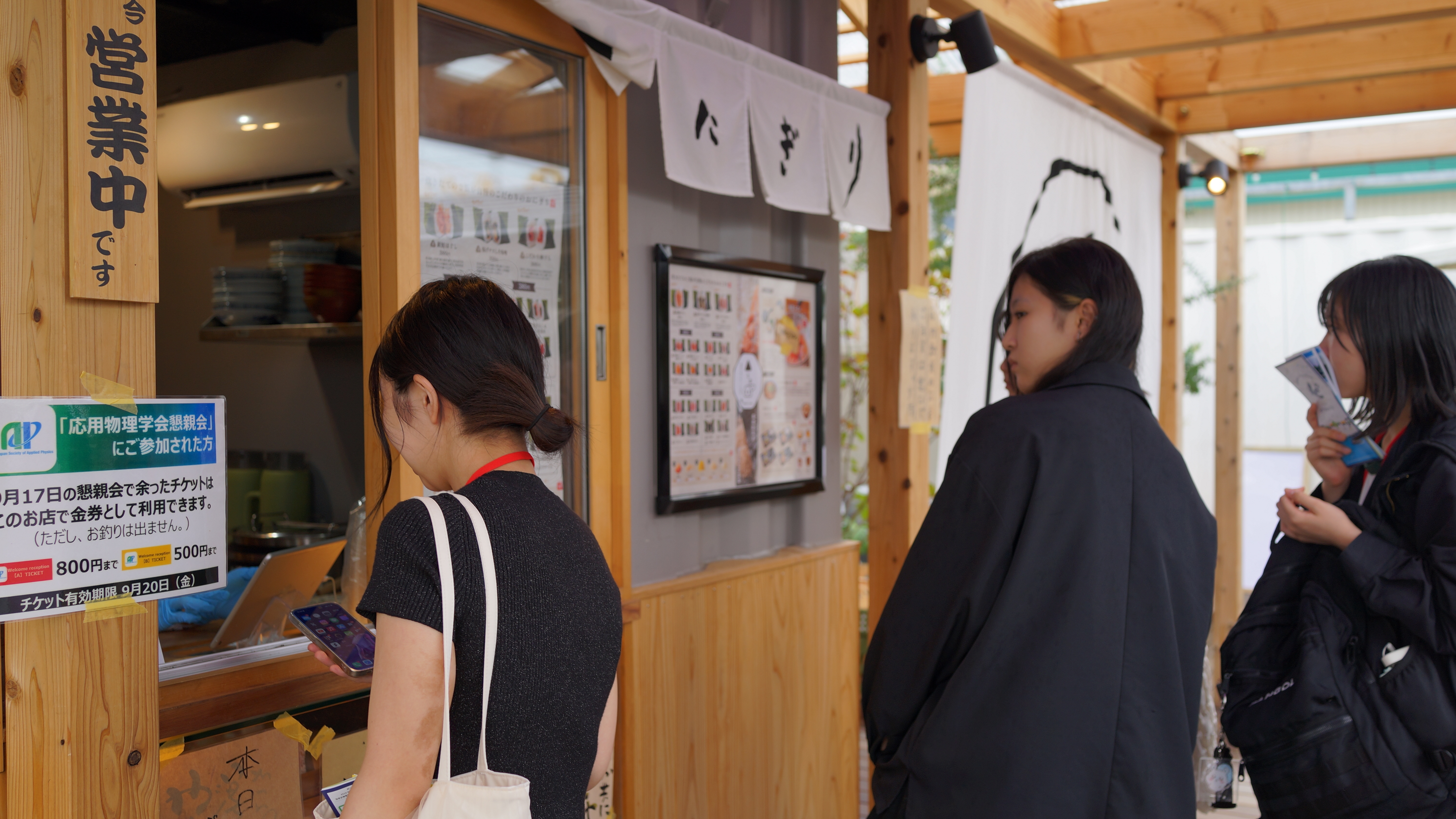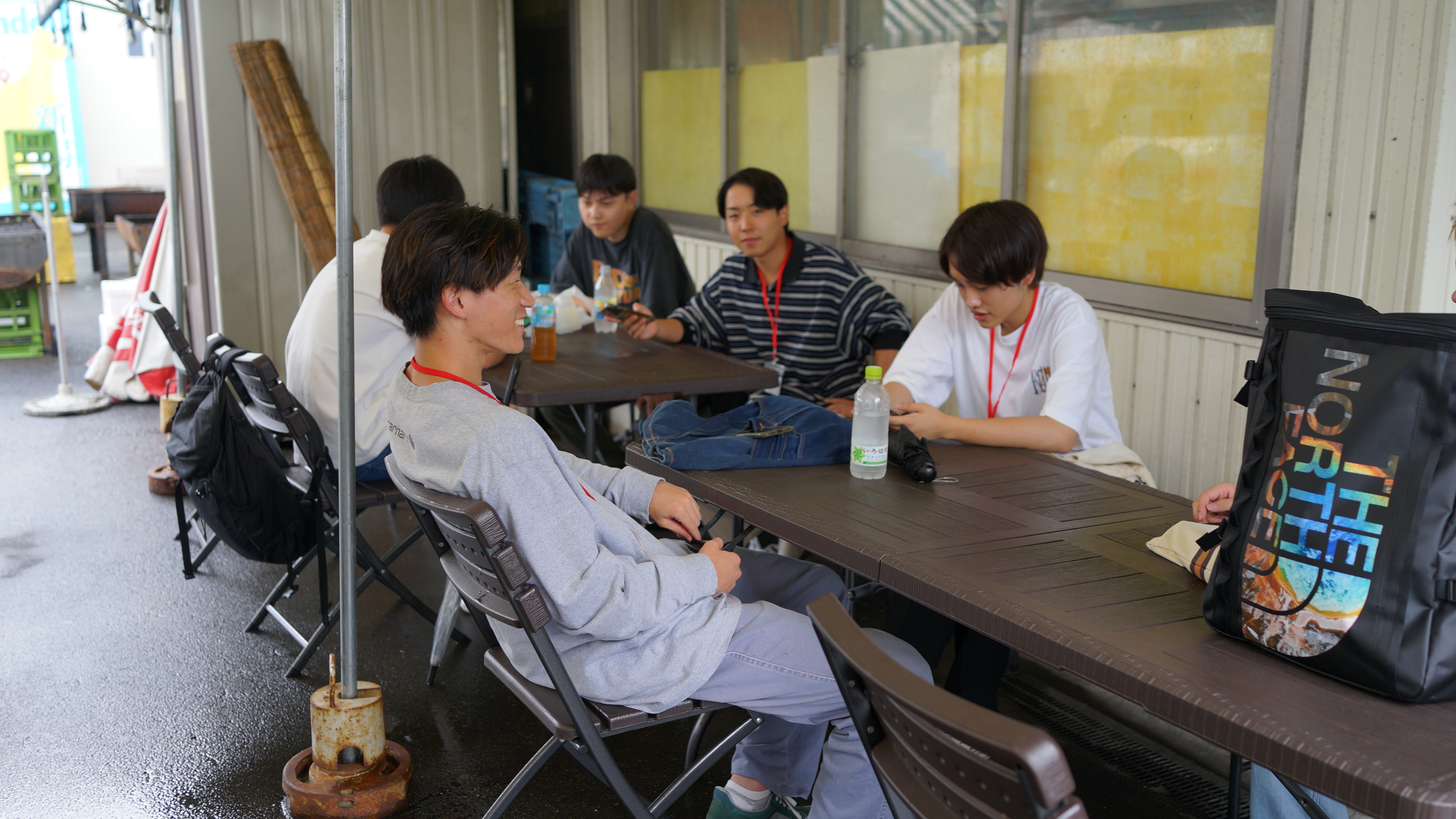 到着した時には生憎の雨となりましたが、好きな飲食店を満喫する姿や、天気の合間を縫って買ったおにぎりなどを仲間同士食べる姿が見られました。