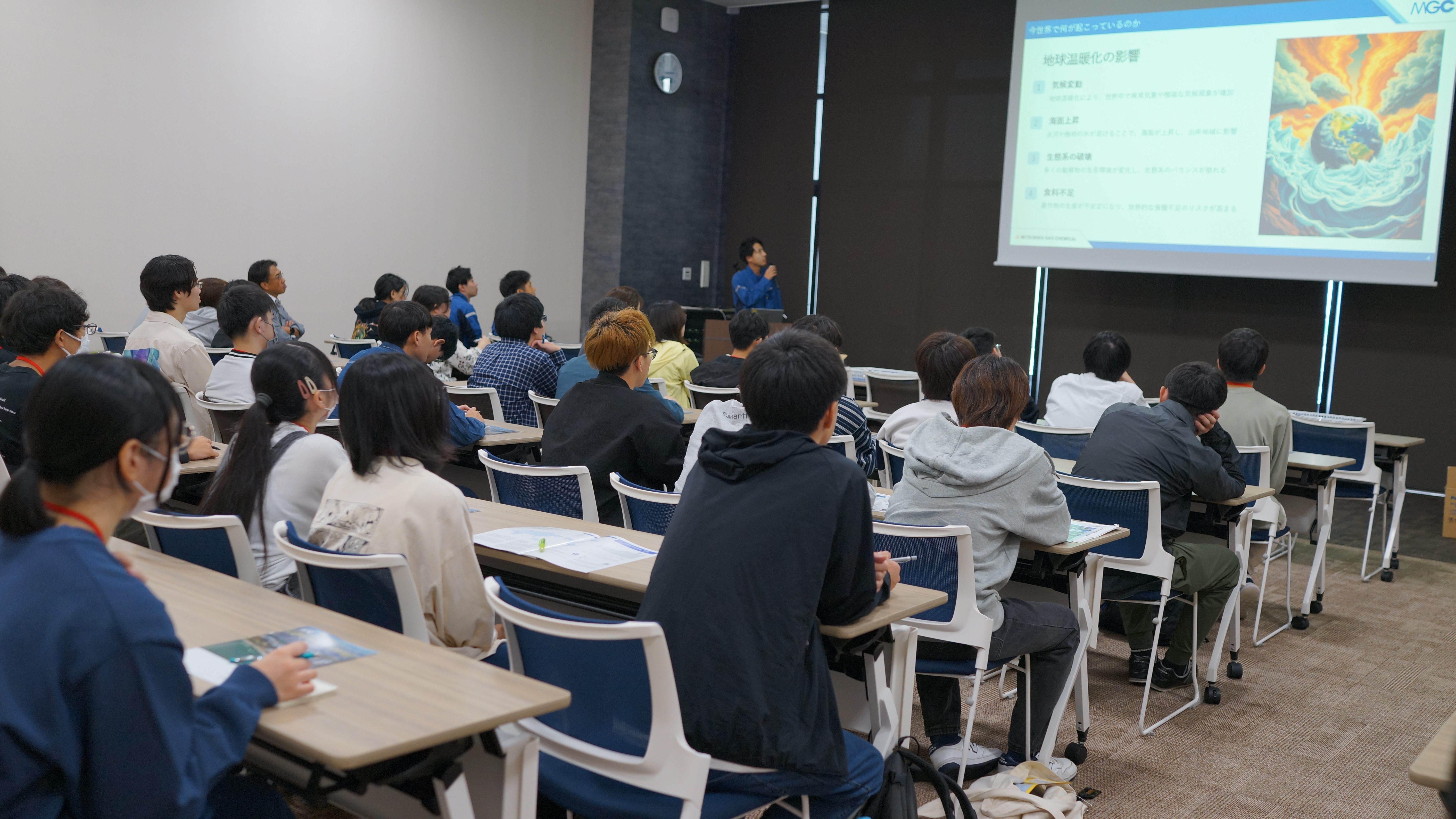 三菱ガス化学新潟工場は、クリーンエネルギーである天然ガスを利用し、特色のある製品を生産している化学工場です。そこで生成されたMXナイロンは炭酸飲料の容器に使われ、製造物の一つである「ピロロキノリンキノン」は健康食品に用いられるなど、実は食料産業とも大きくかかわっています。また、今話題のカーボンニュートラルに積極的に取り組んでおり、再生可能エネルギーや資源循環など様々な視点で環境問題について研究する教員がいる本学とも共通する点があることから今回見学させていただくこととなりました。