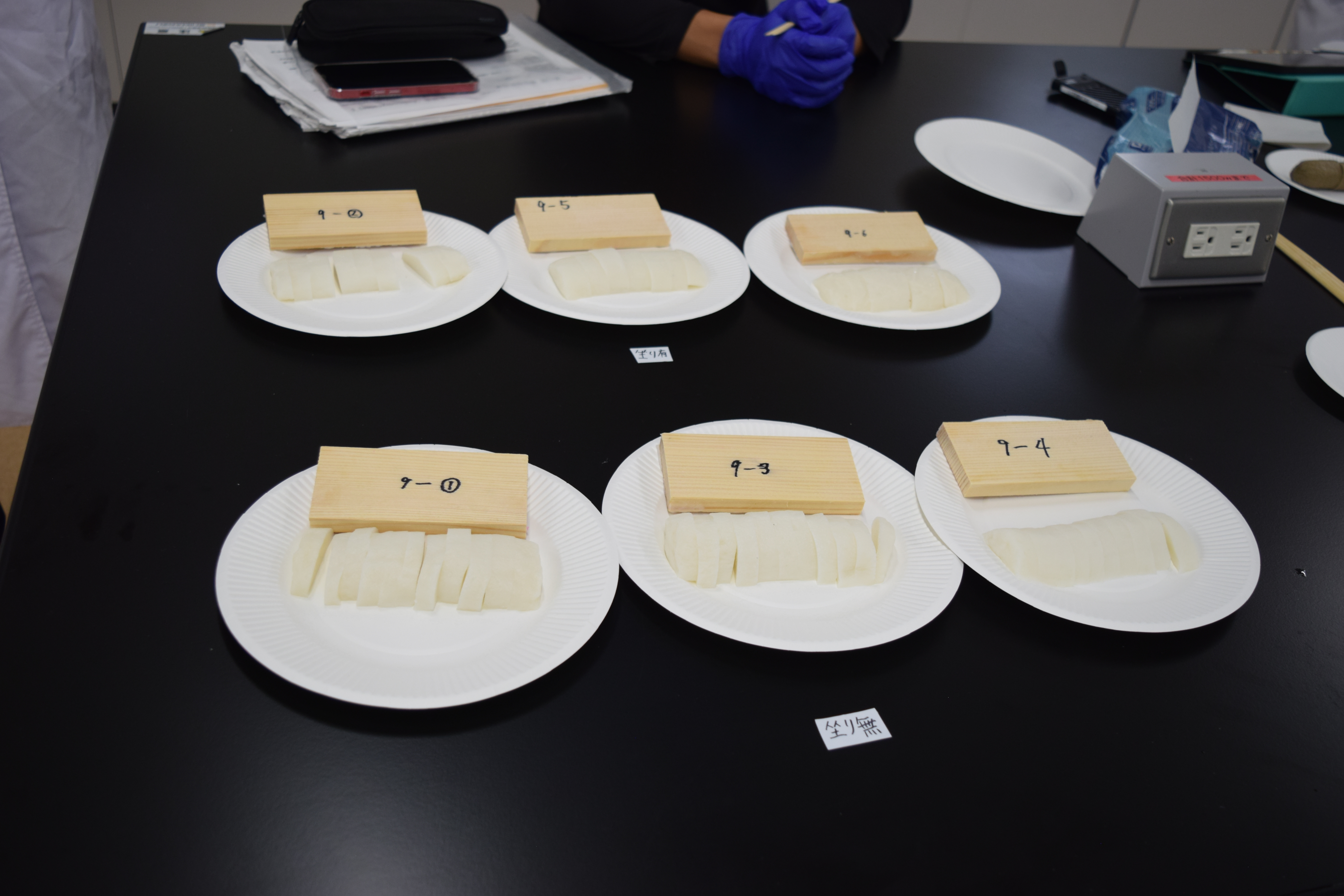 今回製造した板付きかまぼこと、すり身を3回目の授業で官能評価や各班での考察に使用していきます!