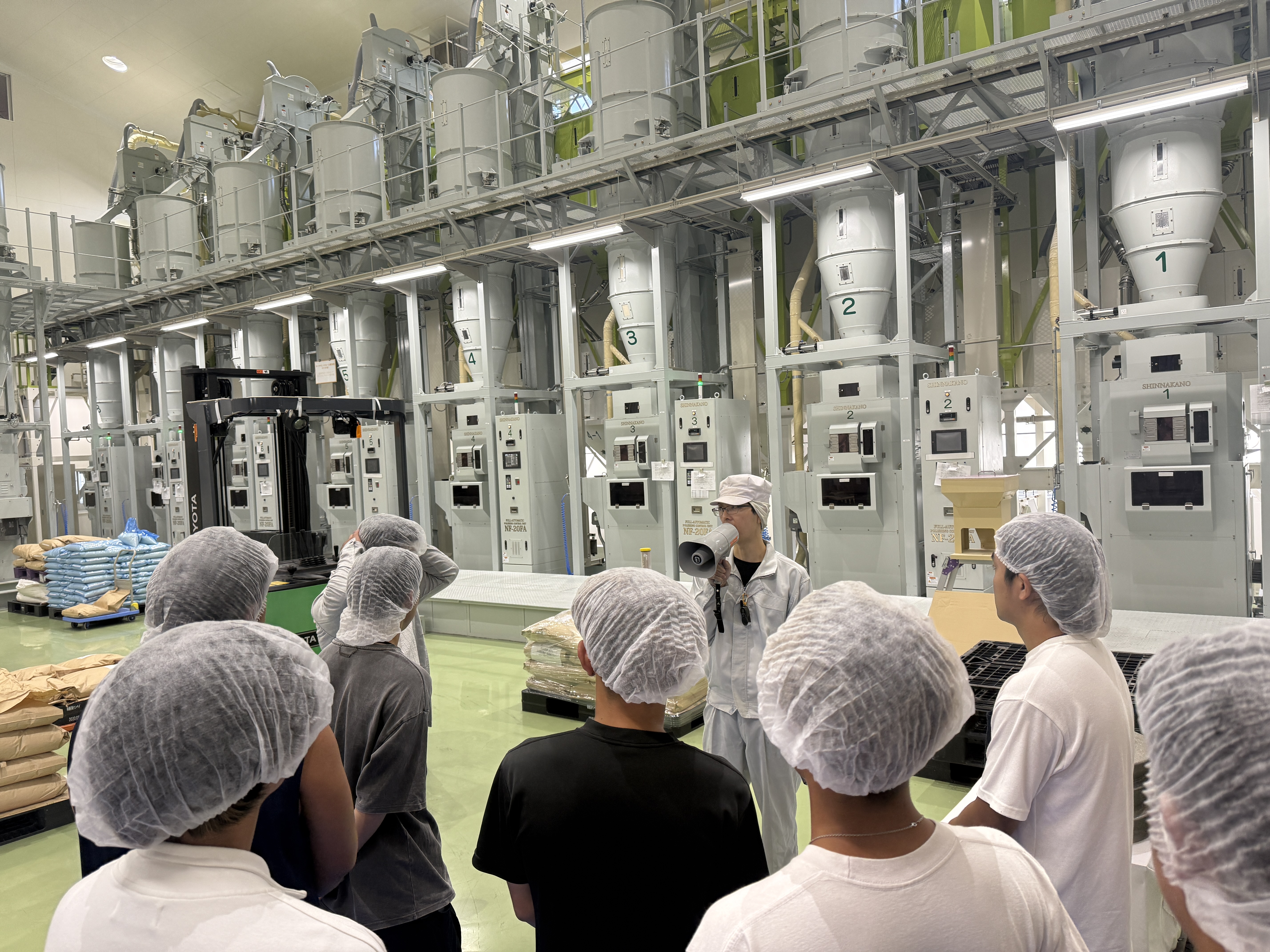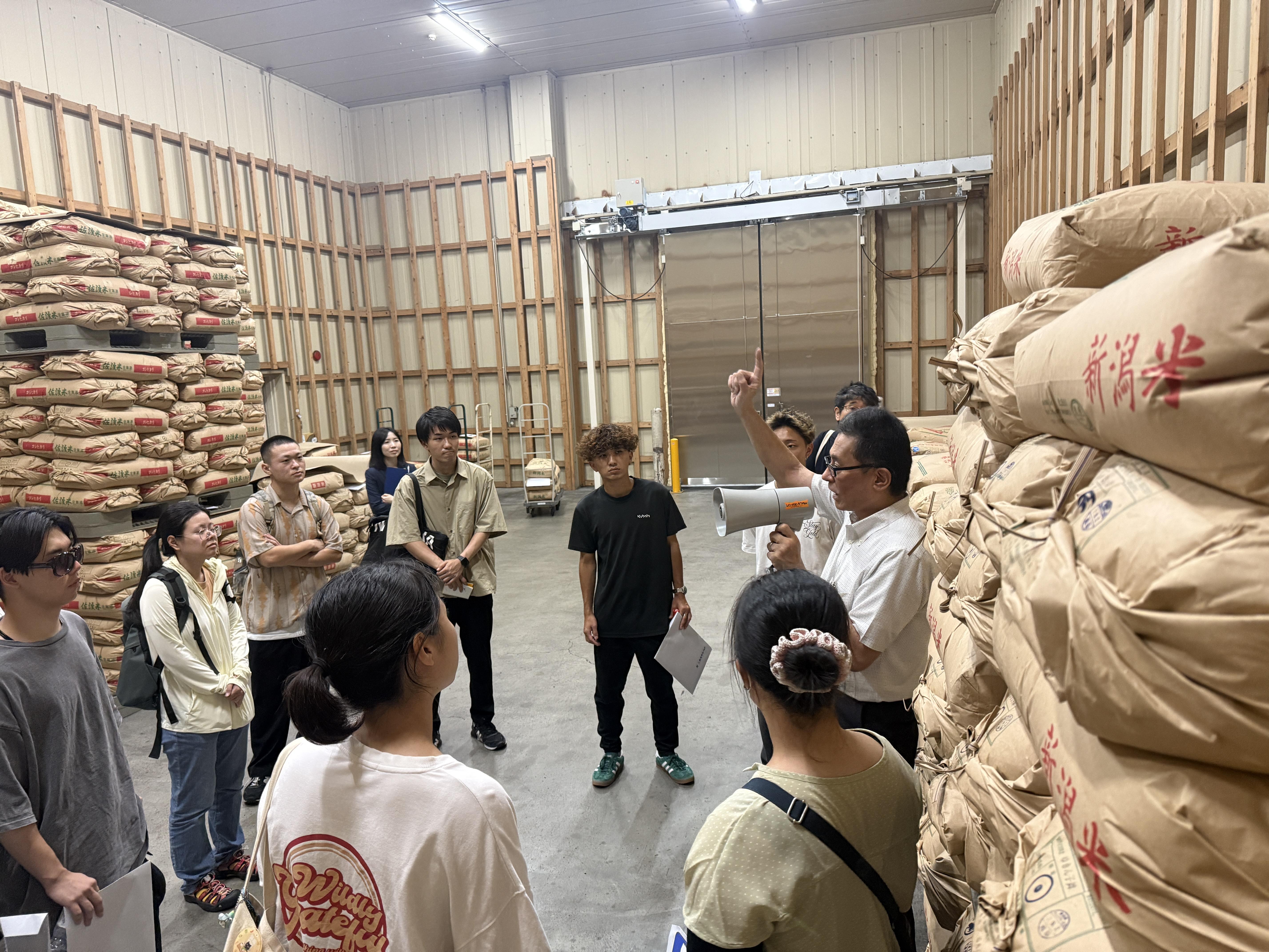 つづいては、株式会社新潟ケンベイ様を訪問し、米流通の現状と課題についてお話いただいたり、倉庫や酒米の加工工程を見学させていただいたりして米の卸売り業における食品流通について学びました。