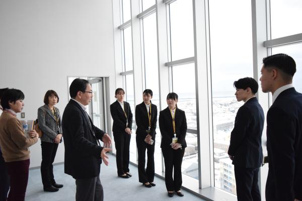 プレゼン終了後には、柏崎市内を一望できる本社最上階へご案内いただくという貴重な機会もご提供いただき、学生にとって忘れがたい体験となりました。