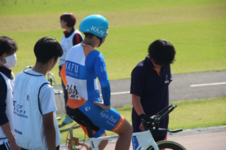 男子ケイリンに出場した佐藤颯選手(同1年)は、予選2組で奮闘しましたが敗者復活戦にまわる結果となりました。敗者復活戦では、上位2名が進出でしたが3着という結果となり敗退となりました。