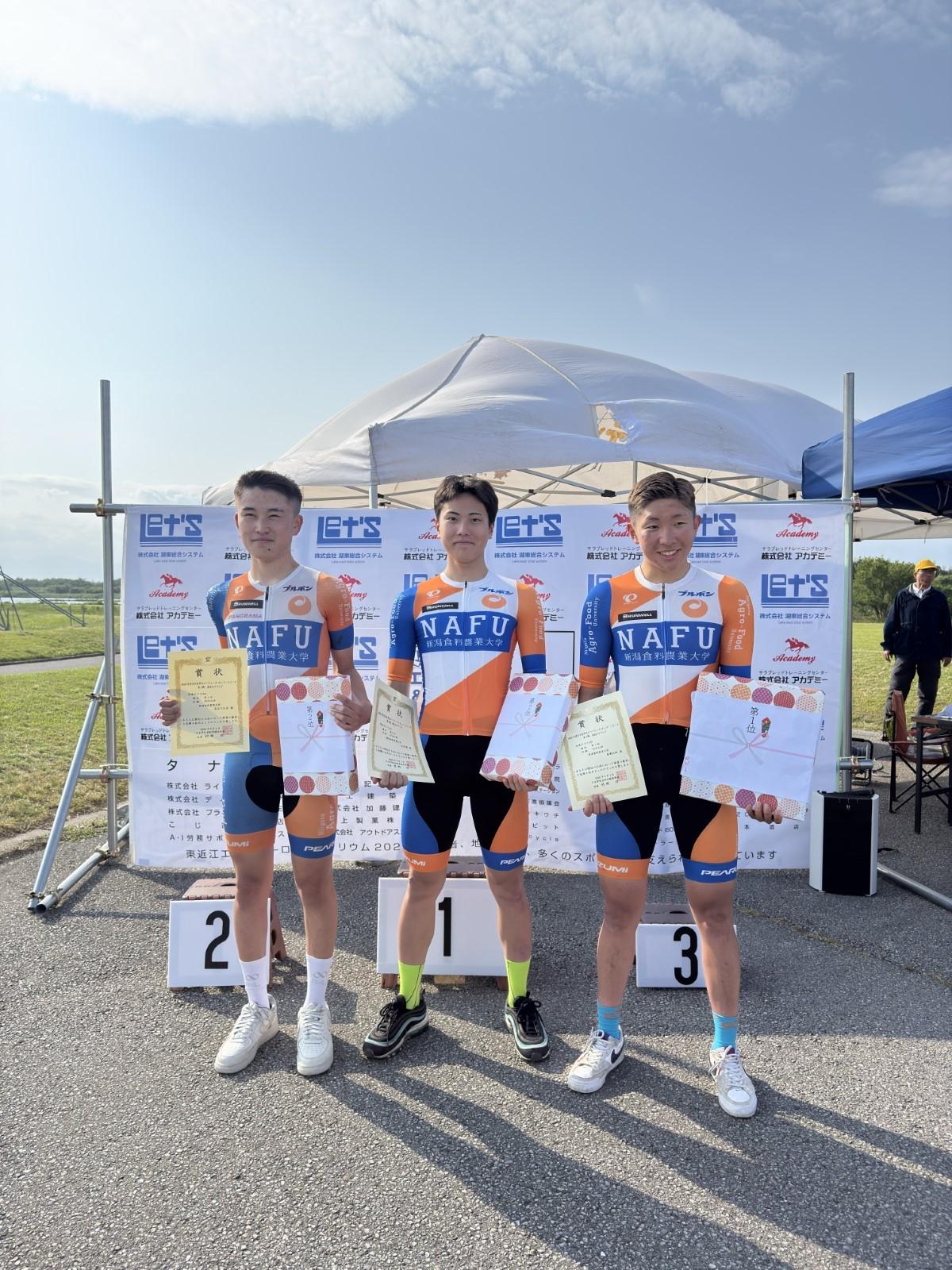 【自転車競技部】クラス3Bで廣瀬大地選手と長谷川礼音選手が1、2フィニッシュ、松井颯選手がクラス3Aで 2位。新たに3名がインカレ出場権獲得