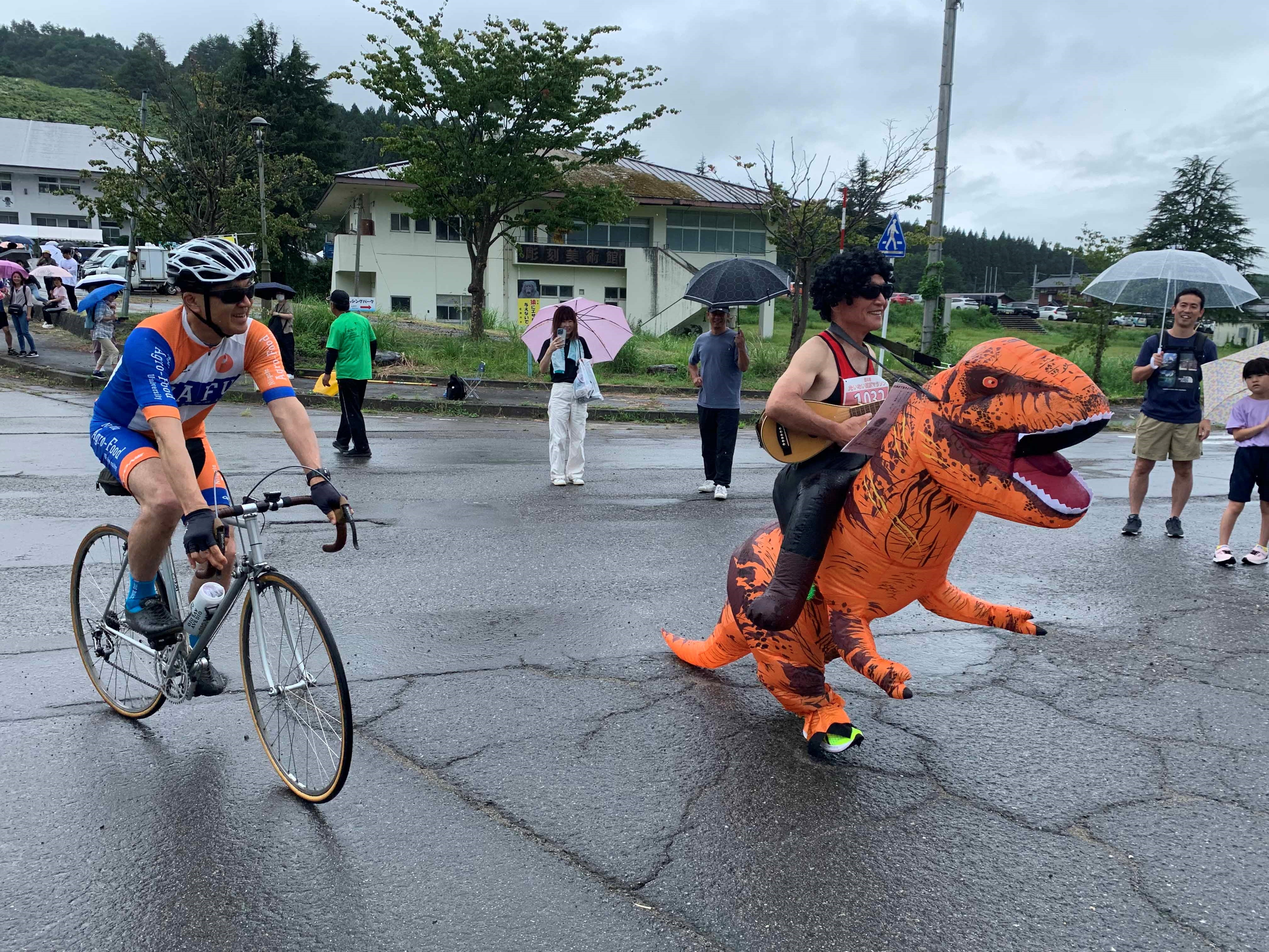 第8回たいない高原マラソンにて。コスプレランナーと筆者