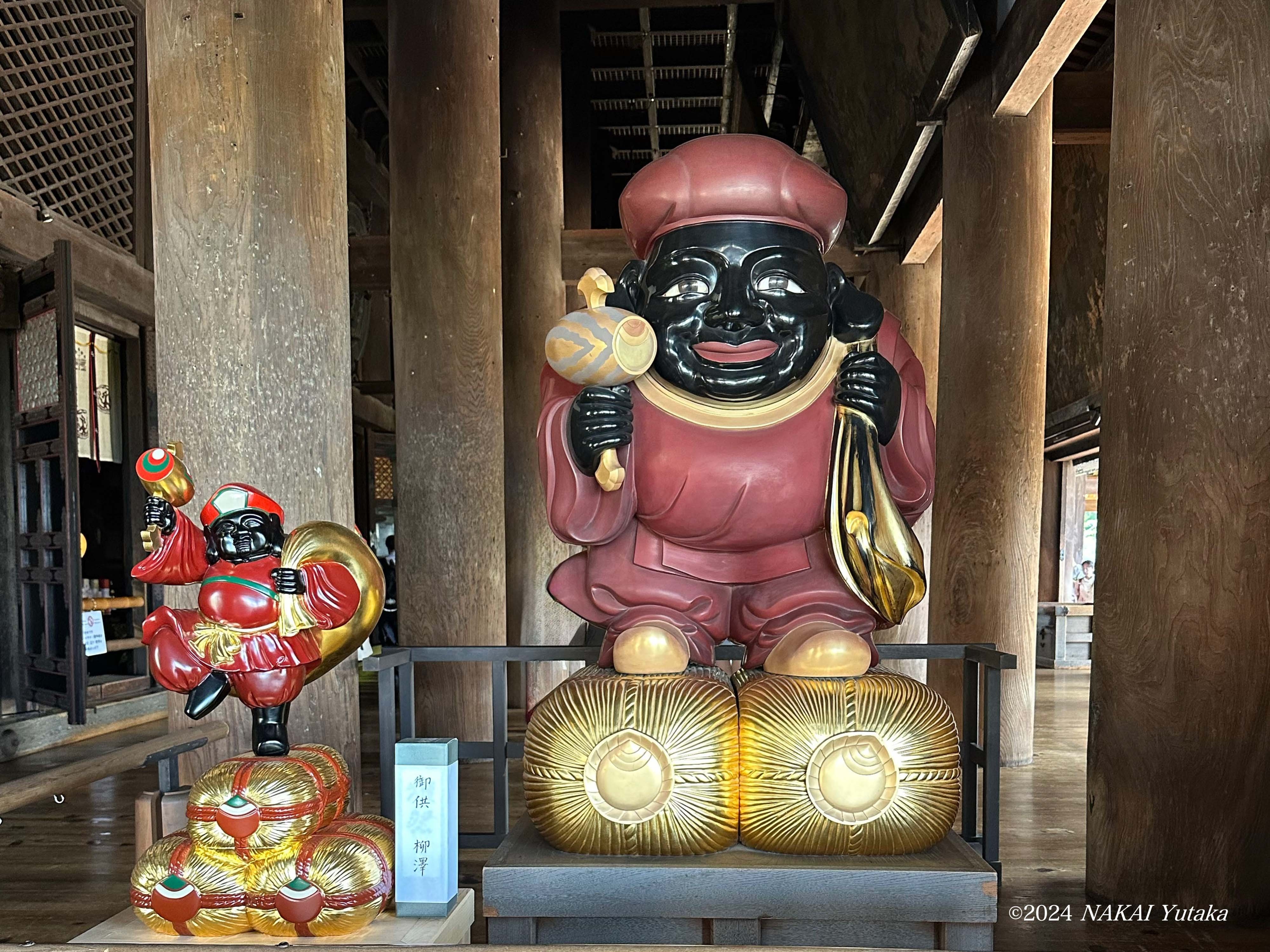 清水寺の大黒天。米俵に乗る五穀豊穣の神。ちなみに五穀とは、多くの場合、米、麦、粟(あわ)、豆、黍(きび)または稗(ひえ)を指します。
