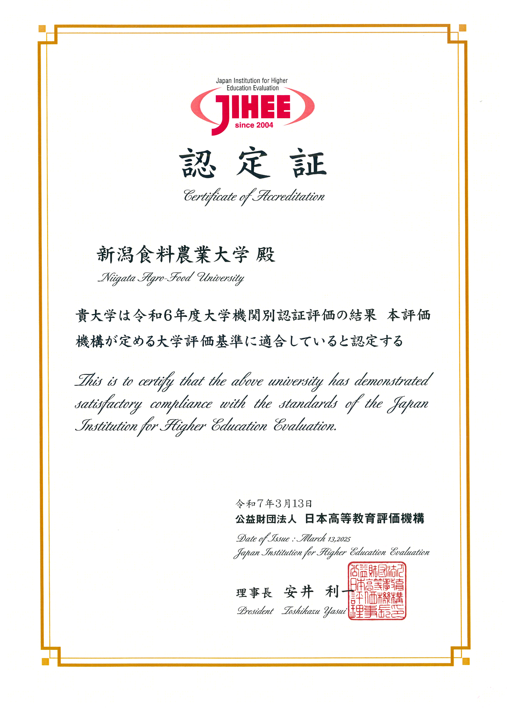 新潟食料農業大学は、この文部科学省のルールの中で、その教育や研究の質が高く評価されています。2024年には、大学評価基準適合と認定されました。