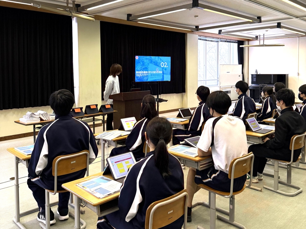 1月31日(金)、上越市立牧中学校にて、本学学生による大学紹介を行いました。
