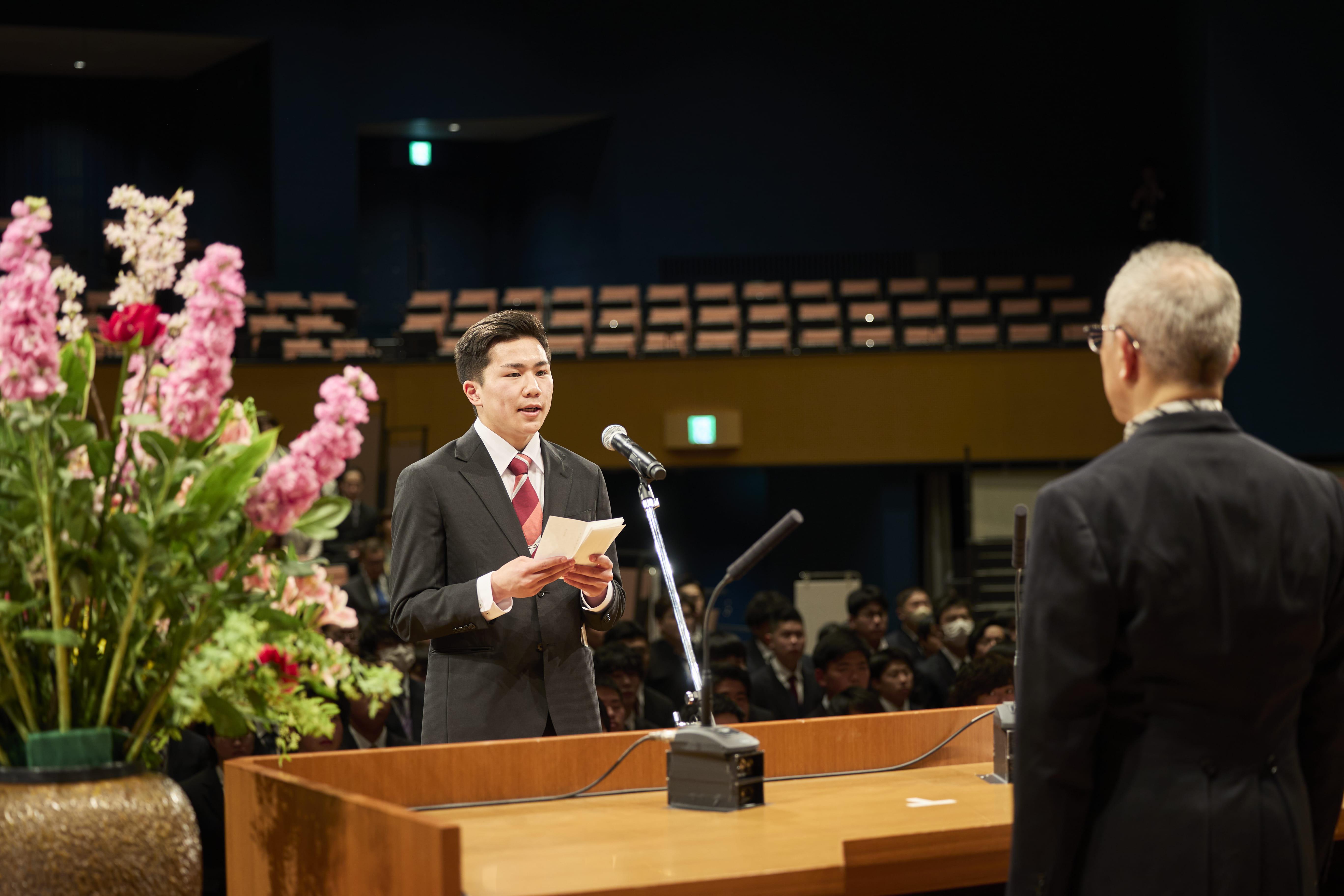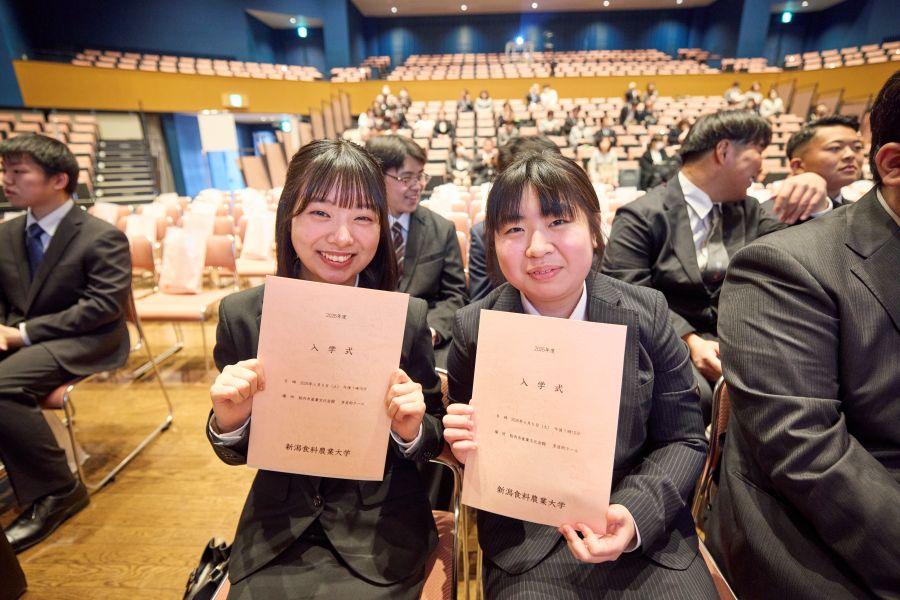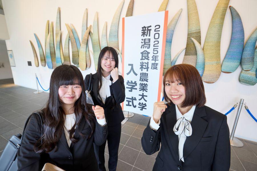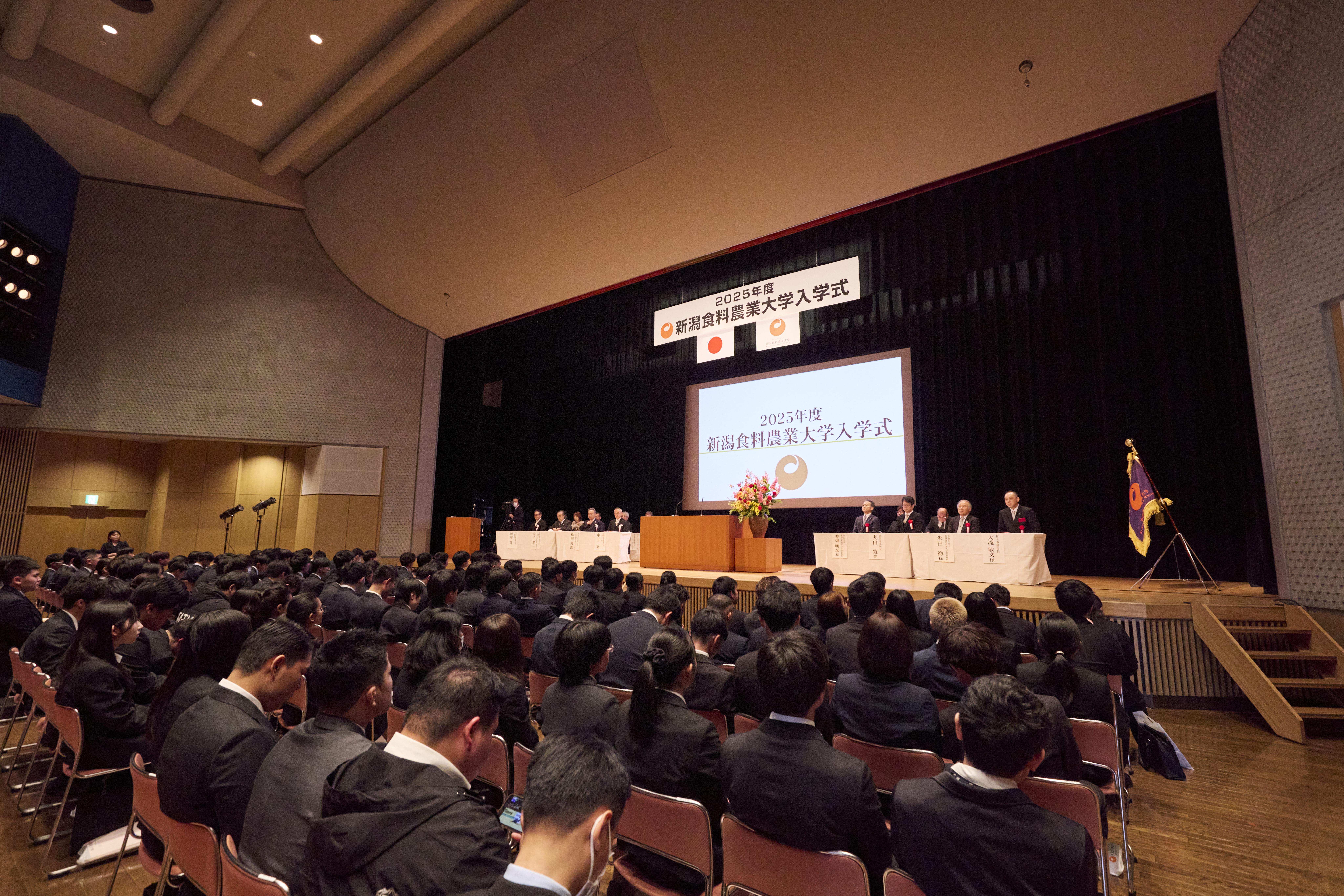 2025.04.11 食農大の日常 2025年度新潟食料農業大学入学式を挙行いたしました 4/5(土)胎内市産業文化会館にて、2025年度新潟食料農業大学入学式を執り行いました! 式典では学部生・大学院生の入学許可に続き、中井 裕 学長から式辞が述べられました。 新入生の誓いの言葉では、学部生代表が大学生活の抱負を表明しました。 新入生の皆さん、学びや部活、サークル、地域とのつながりなど、さまざまな経験を通じて充実した大学生活を送ってください! 皆さんのこれからの活躍を楽しみにしています! 当日の動画は下記よりご覧いただけます。 アーカイブ動画はこちら 関連記事 2025.11.06 食農大の日常 新潟食料農業大学校歌「緑の地から」お披露目会が開催されました! 2025.10.31 食農大の日常 【キャリアセンター】10/22(水)3限『株式会社野崎採種場』業界研究セミナーを開催いたしました。 2025.10.23 食農大の日常 【キャリアセンター】10/21(火) NAFU版 ようこそ先輩を開催いたしました! 記事一覧へ