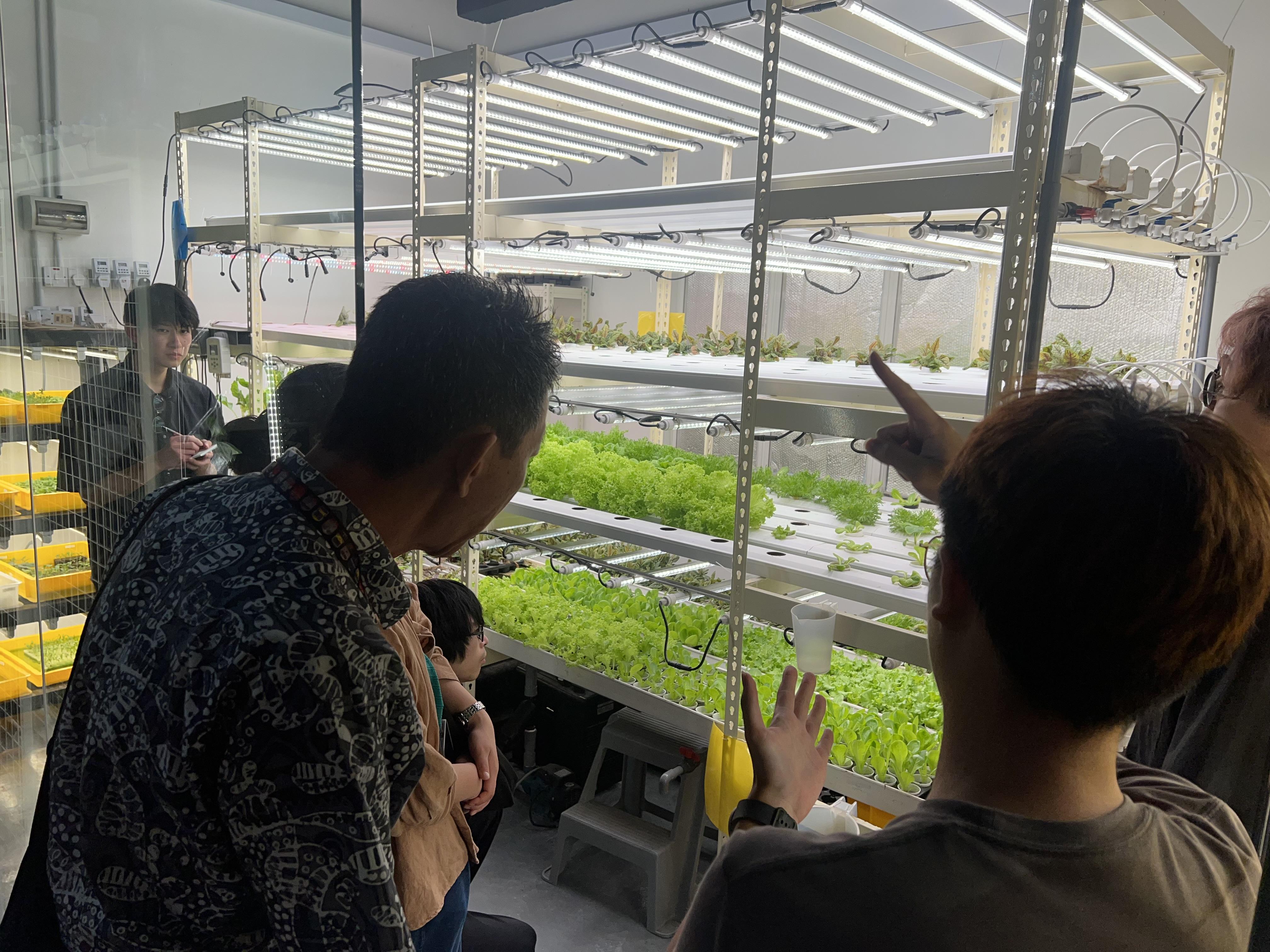 研修3日目には、都市型スマート農業のモデル施設「City Farm」を訪問しました。ビルの中に設置されたこの施設では、IoTや水耕栽培を用いた持続可能な都市農業が実践されています。見学では、現地スタッフの英語によるガイドのもと、栽培システムやエネルギー管理、収穫プロセスなどを学びました。従来の農業とは異なる新しいスタイルに学生たちは大きな刺激を受け、持続可能な社会への興味をさらに深めていました。