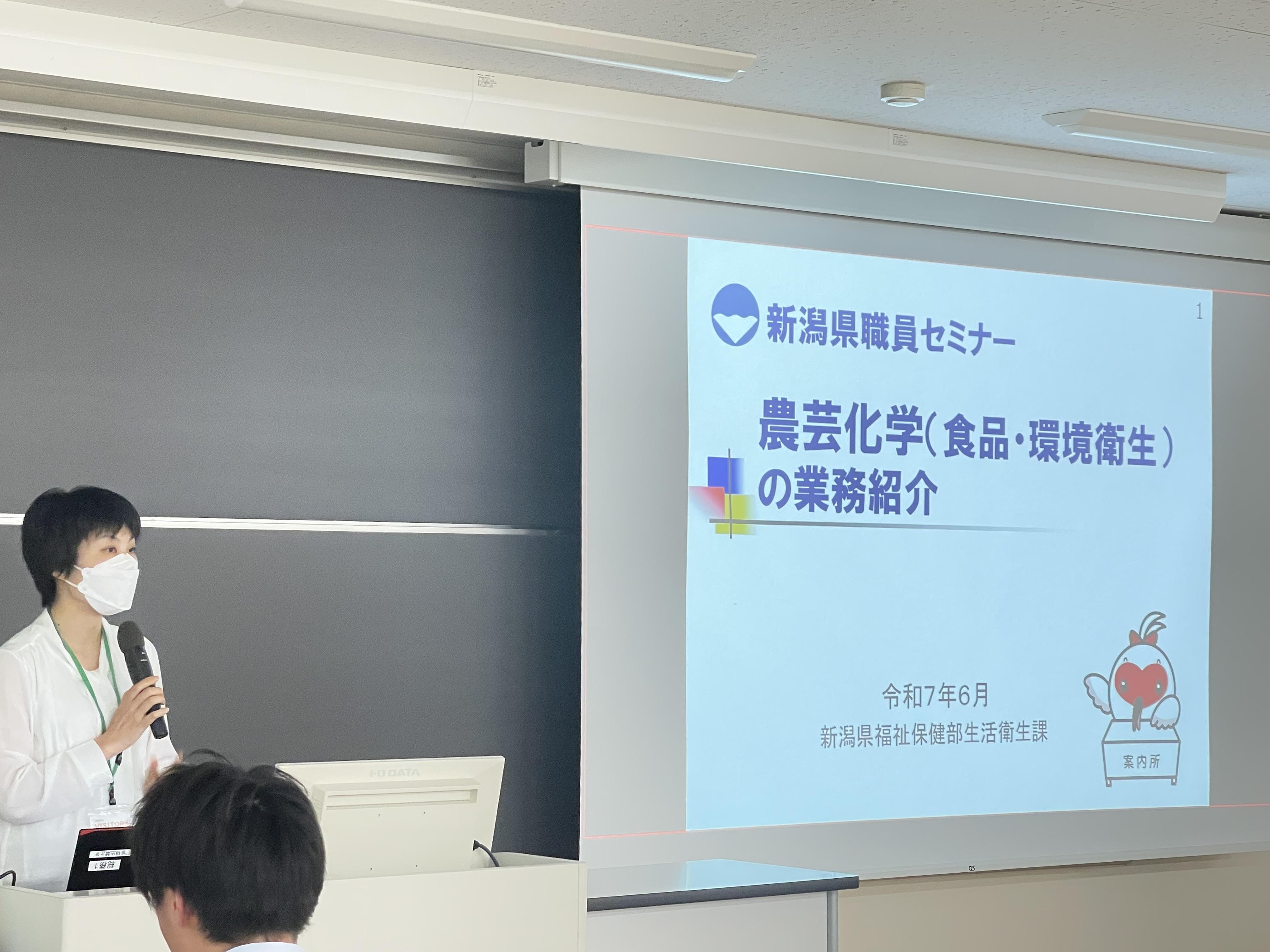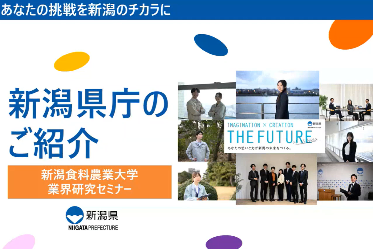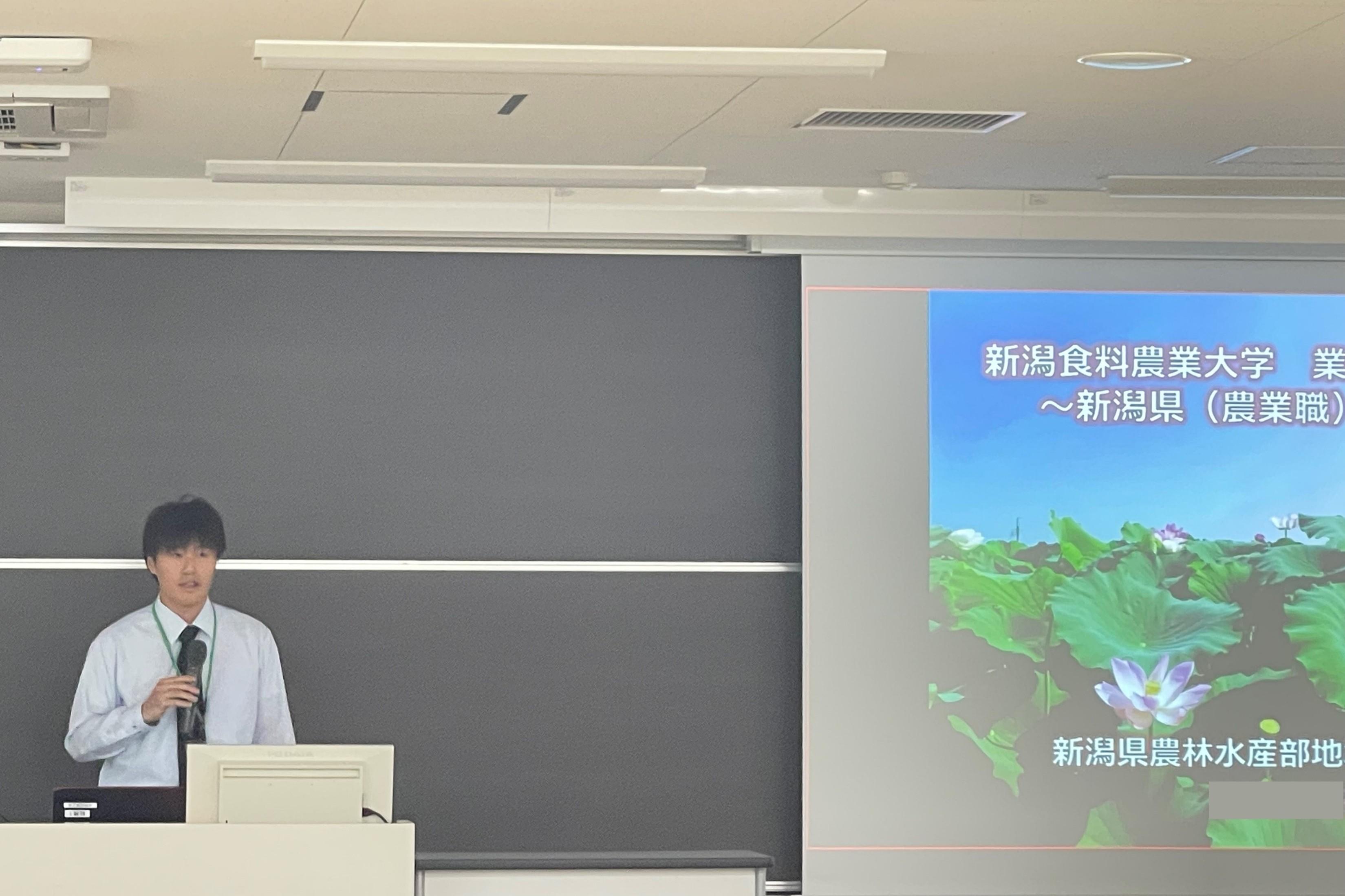 3年生を対象に、対面・オンラインのハイブリッド形式で実施し、新潟県庁より一般行政職、農業職、農芸化学職の方々をお迎えしました。