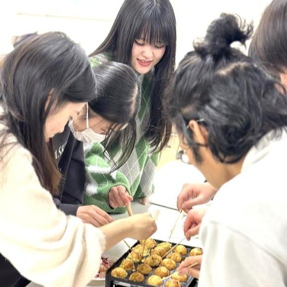 今回の交流会では、たこ焼き作りを通して交流を深めました。参加者はグループごとに自己紹介を行った後、たこ焼きの調理に挑戦しました。初めてたこ焼きを作る学生もいましたが、経験者の学生が丁寧にサポートし、協力し合いながら生地作りから楽しむ姿が印象的でした。出来上がったたこ焼きはどのグループもおいしく仕上がり、和気あいあいとした雰囲気の中で味わいました。