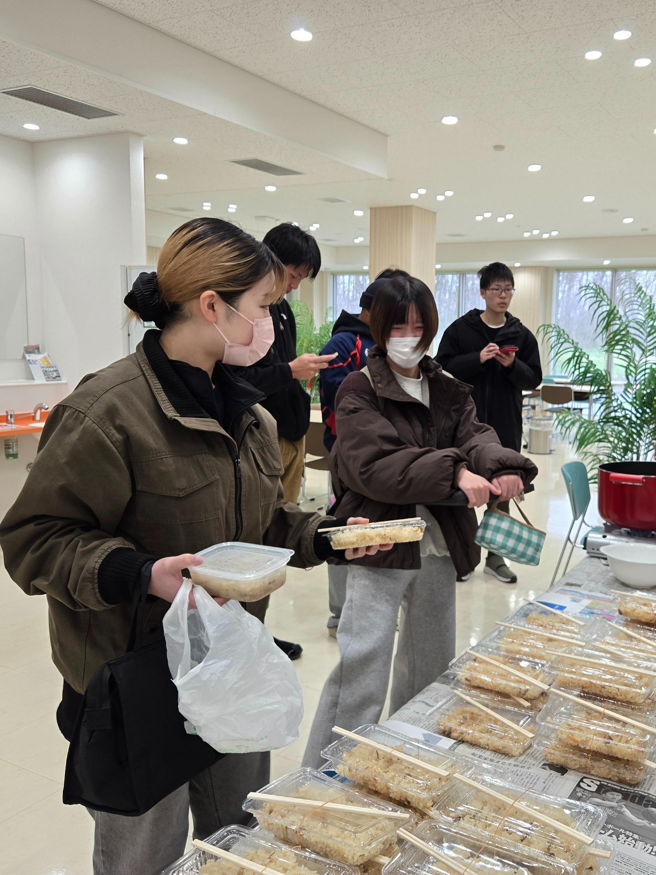 お昼休みには、約100名近くの学生や教職員が参加し、配布の時間帯には行列ができるほどの大盛況。