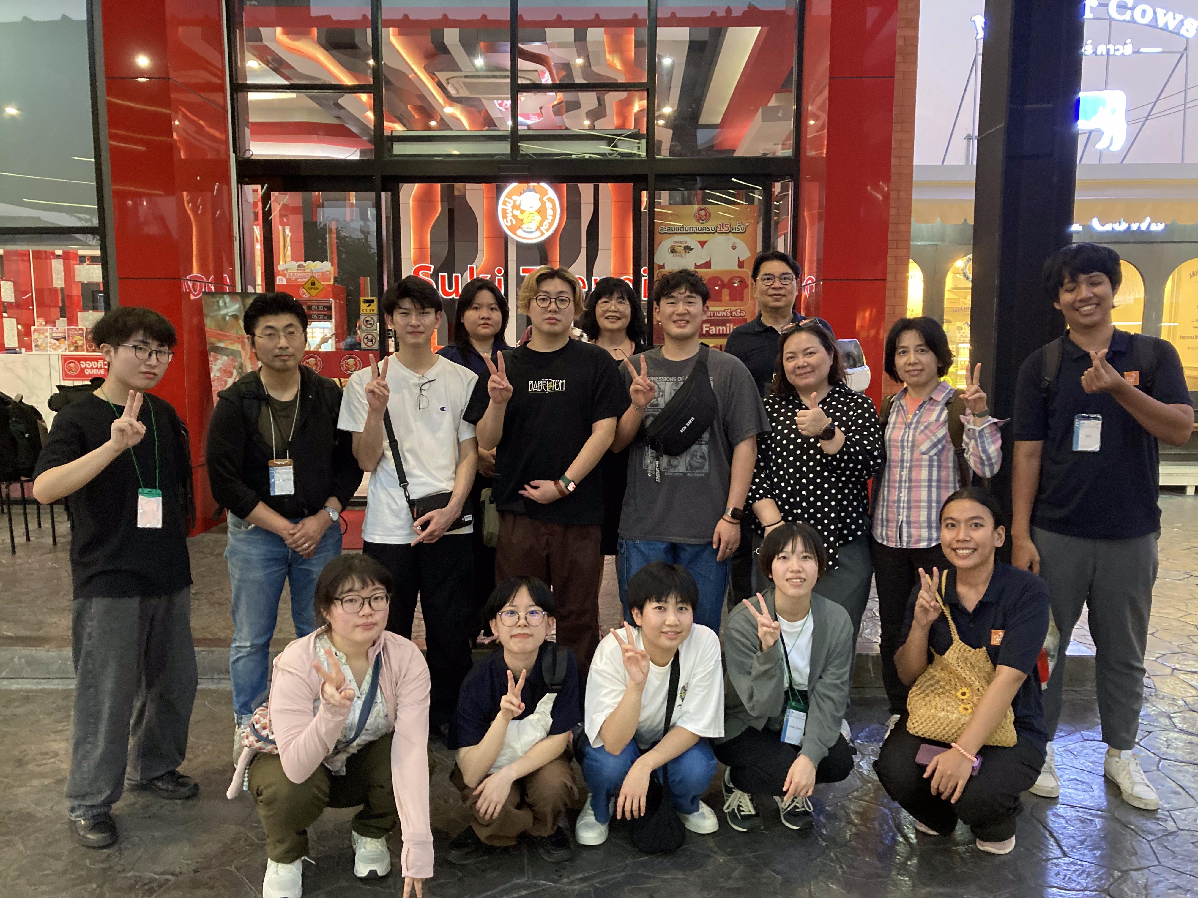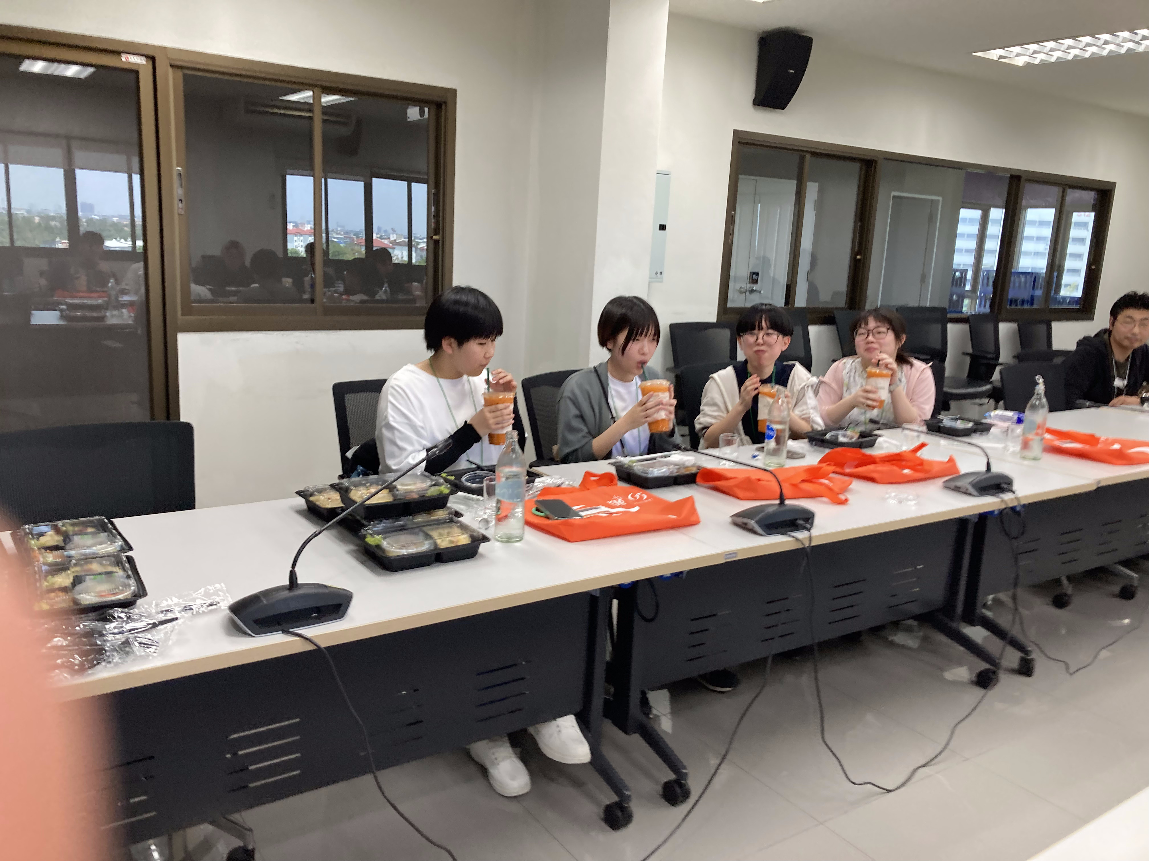 夕食はタイ式すき焼き(タイスキ)のビュッフェ形式で、自分の好きな食材を選んで楽しみました。たれは甘みと酸味、ほんのりスパイスが効いており、日本のすき焼きとはまた異なる味わいです。KMUTTの学生たちと一緒に食事を楽しみながら、初日・2日目の感想や印象を語り合いました。