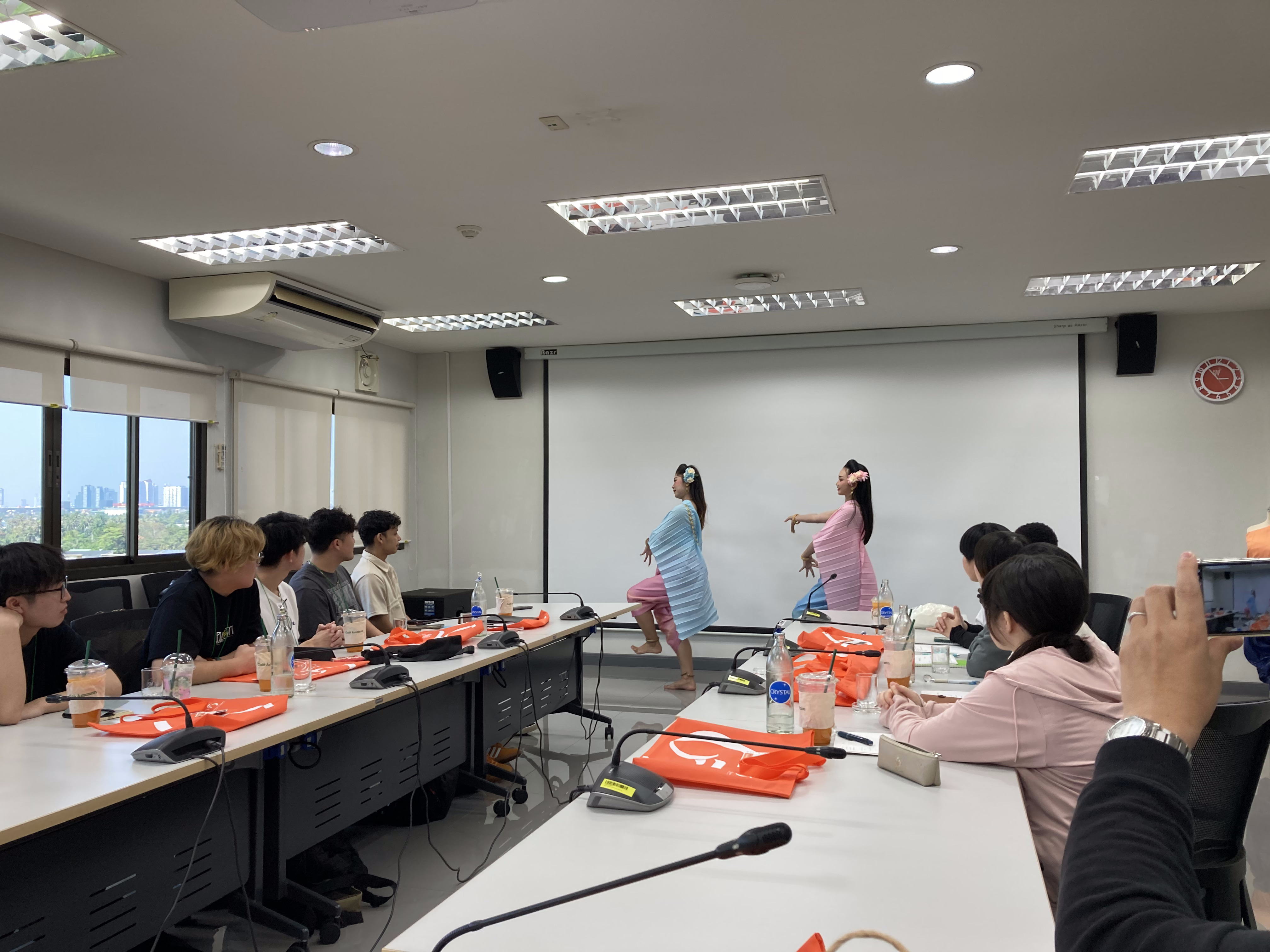初日にはタイの衣装を試着し、一緒に踊る体験もできました。踊るのは難しく、うまくできませんでしたが、KMUTTの学生の皆さんが細かいところまで親切に教えてくれたことがとても嬉しかったです。
