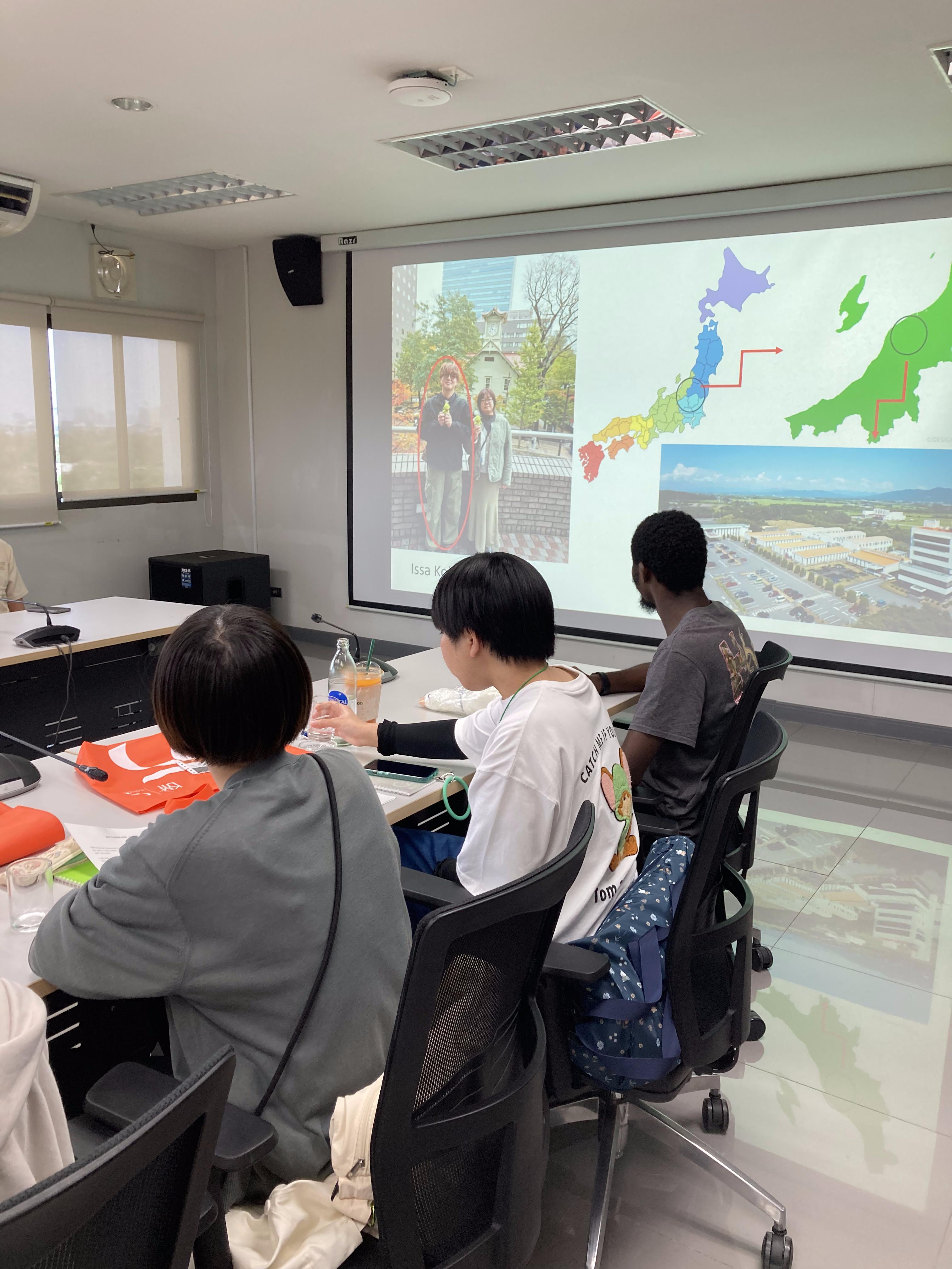 学生たちはそれぞれ準備したPowerPointを用いて、趣味や研修で楽しみにしていることを発表しました。初めはやや緊張した様子でしたが、自分のことを英語で伝え、現地学生と交流する貴重な機会となりました。