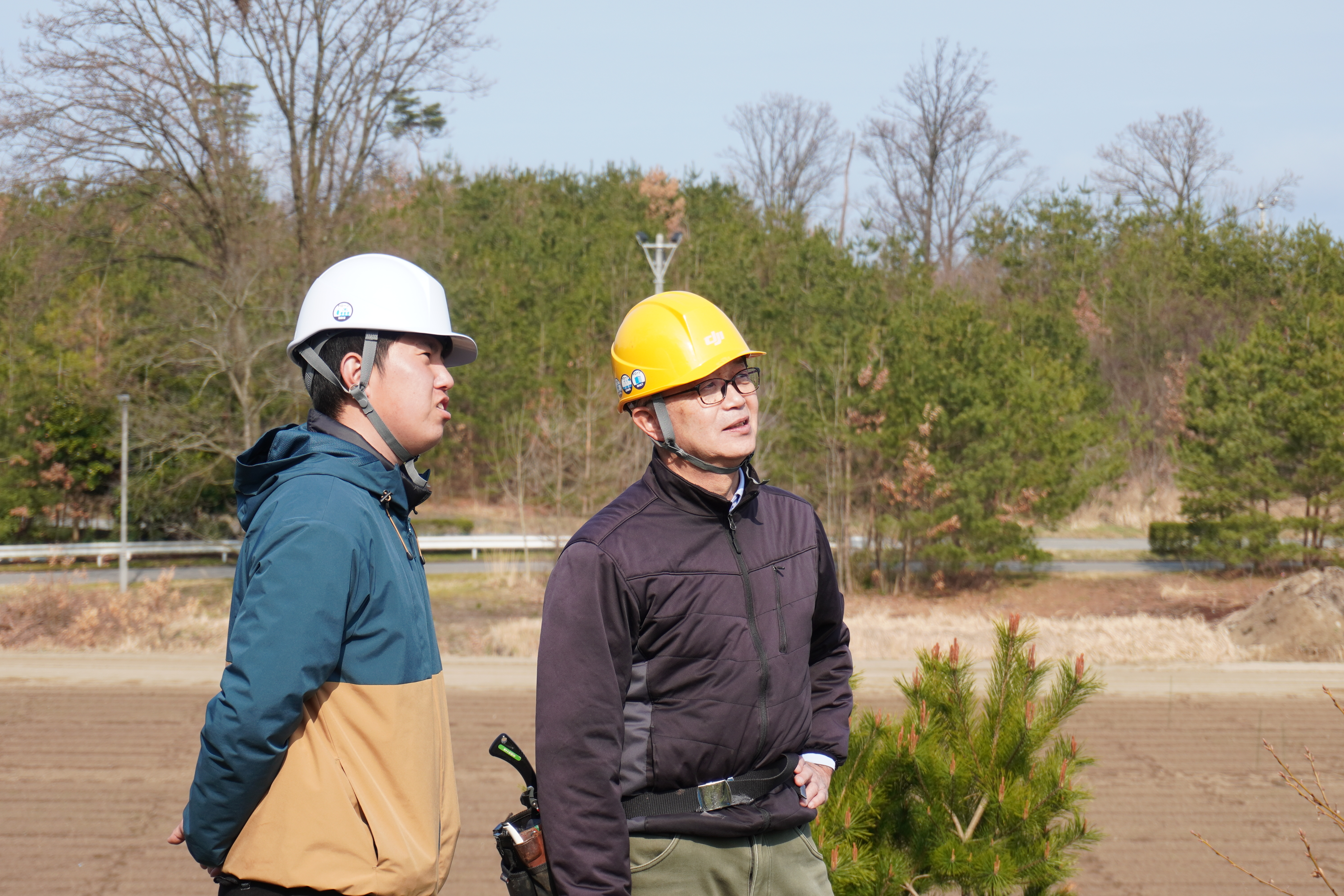 果樹園では地上でも活動が進んでいます。ロボット草刈り機、愛称「哲郎くん」が作業を担当し、広い園地の草刈りを効率よくサポートしています。また、ソーラーパネルで日射量を感知する潅水装置も稼働。お天気を感知し自動的に水を供給することで、効率的な環境管理を実現しています。