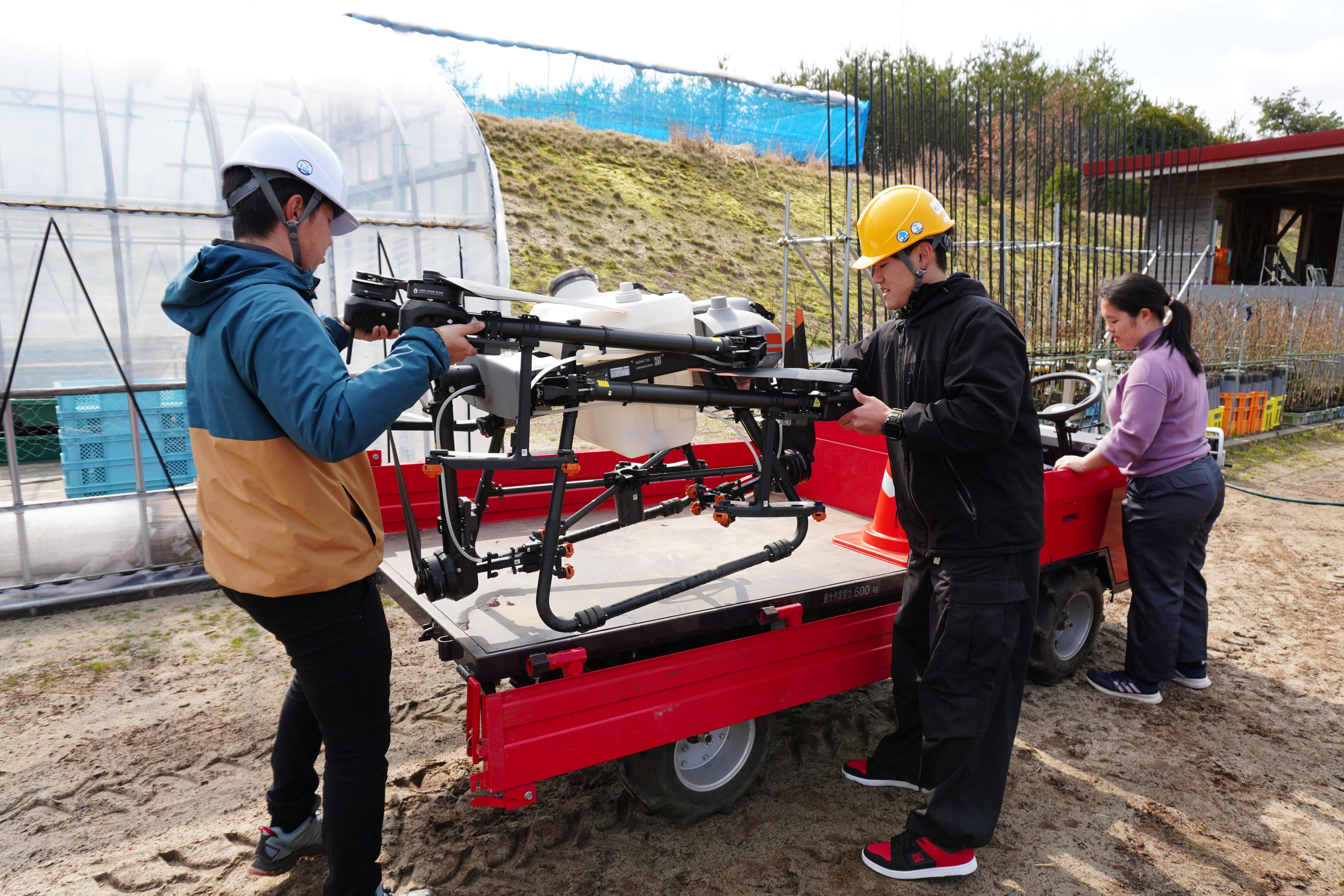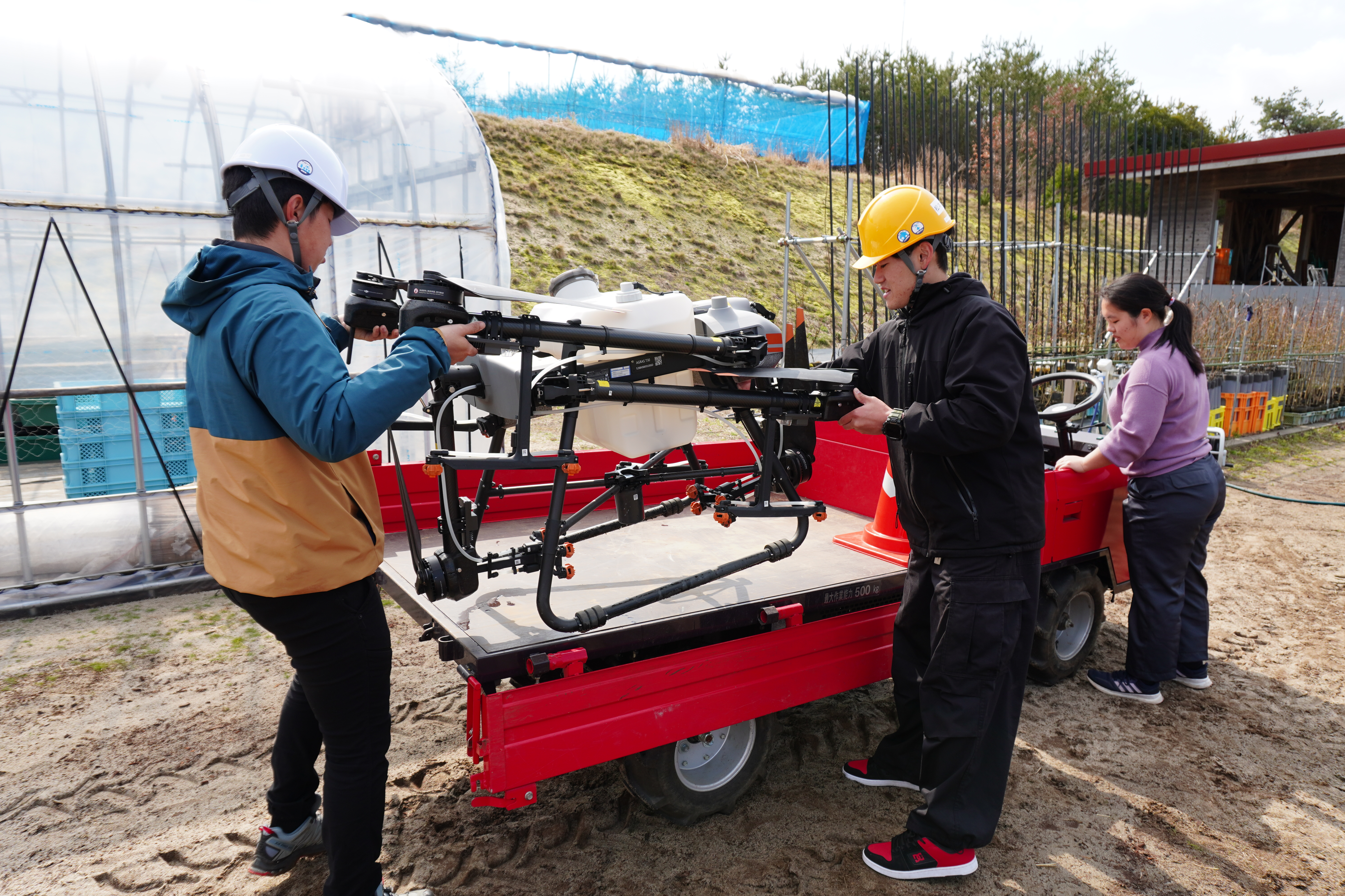 生徒たちは自己採点で「100点!」と評価する見事な初フライトを終え、新年度の果樹園は元気にスタートしました。