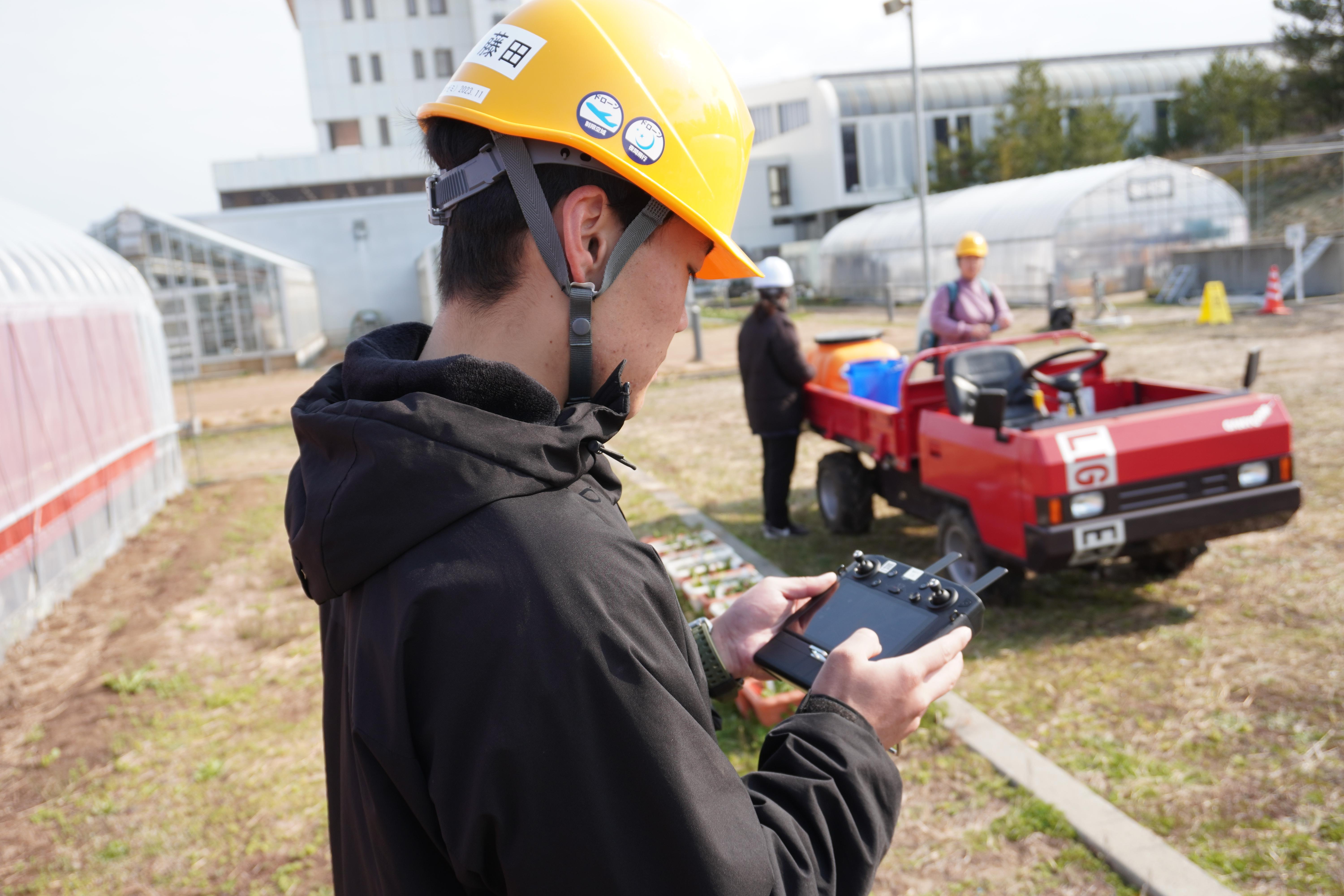 本日、松本ゼミで、今年度初めての大型ドローンによる果樹園の防除作業を行いました。卒業した先輩方や教員から20時間以上に渡る安全飛行訓練を受け、今日は後輩たちが初めて操縦に挑戦。朝7時に集合し、風や機体の状態を確認したうえで操作を開始。緊張しながらも無事にフライトを成功させました。