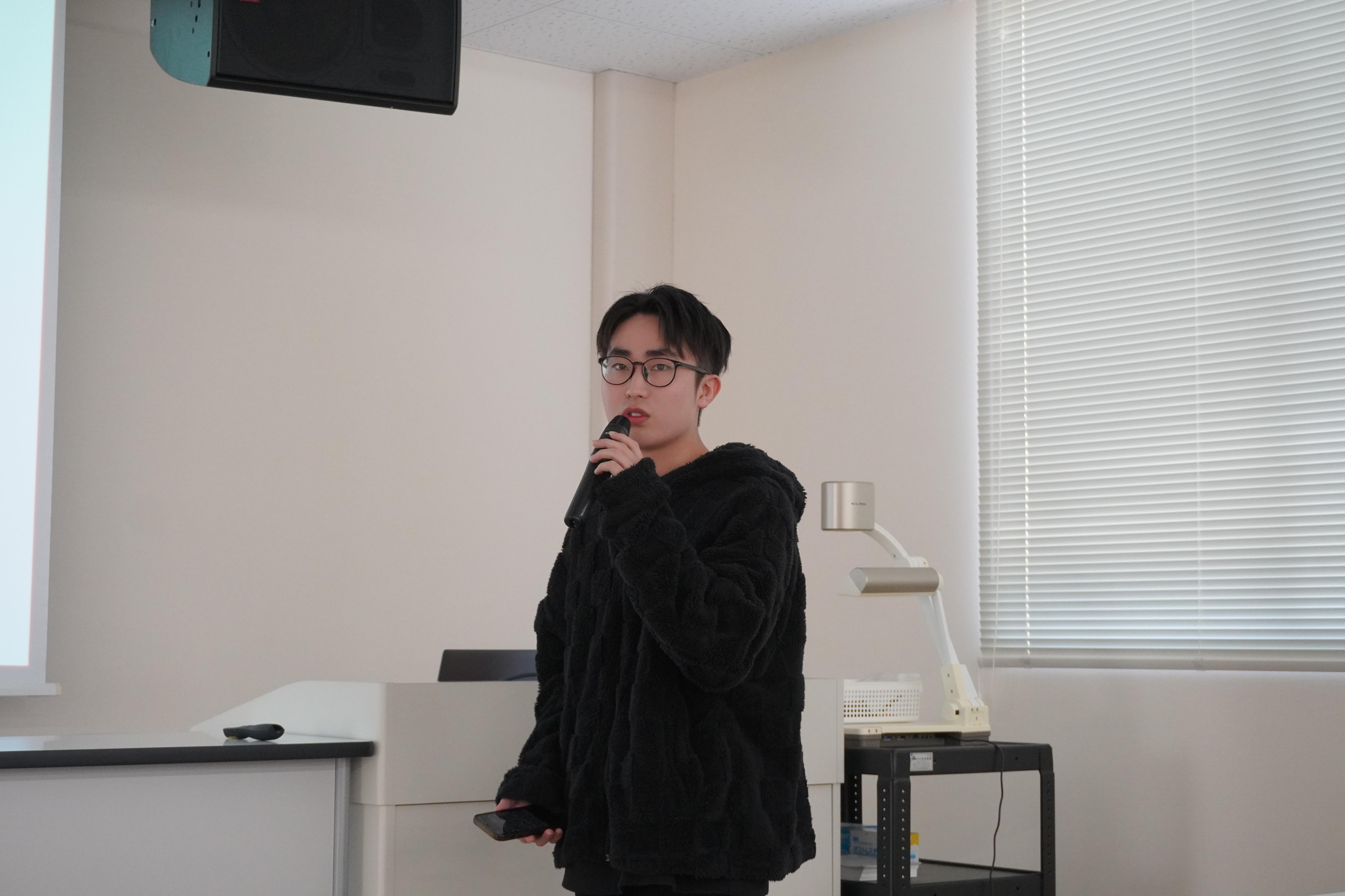説明会では、2025年度に実際に海外研修を体験した先輩学生たちが登場!アグリコース3年の栗本くんは、「五感」で感じた街の匂い、食文化の違い、プランテーション見学での驚きや発見など、スライドを使って報告してくれました。