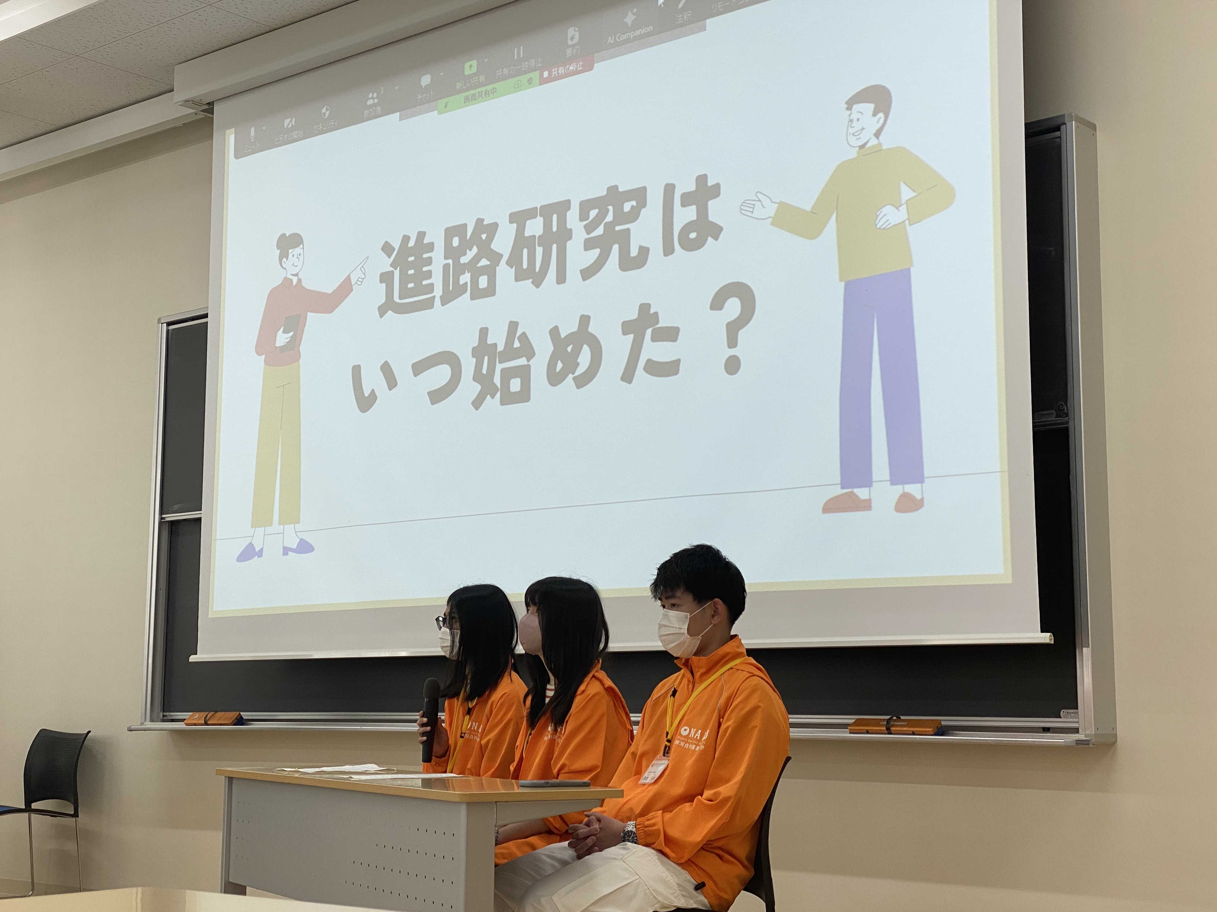 入試対策講座『先輩たちの志願理由』では、先輩学生が登壇し、受験勉強で気を付けたことや本学に入学した理由などをお話しいただきました。