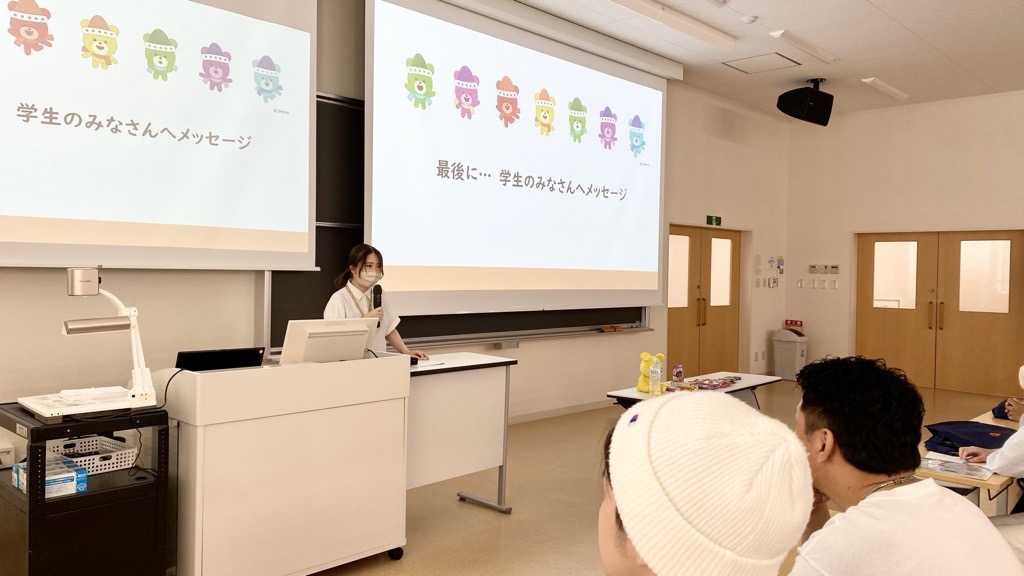 8月3日(土)オープンキャンパスにて、株式会社ブルボン 人事企画部の田中 良 様と本学の卒業生、田辺奈々さん(2023卒:本学第2期生)より、参加した高校生や保護者の方に向けて特別講演を行っていただきました。