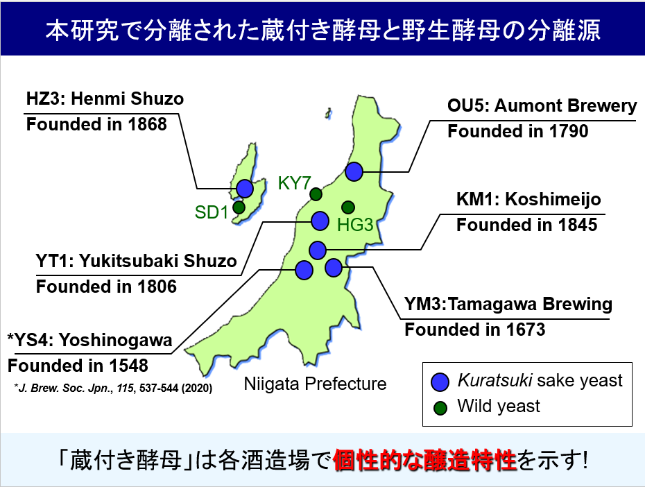 新潟県内の清酒製造場に残る「蔵付き酵母」の多様性と醸造特性を解明 ― 国際学術誌 Mycoscience に研究成果を発表 ―
