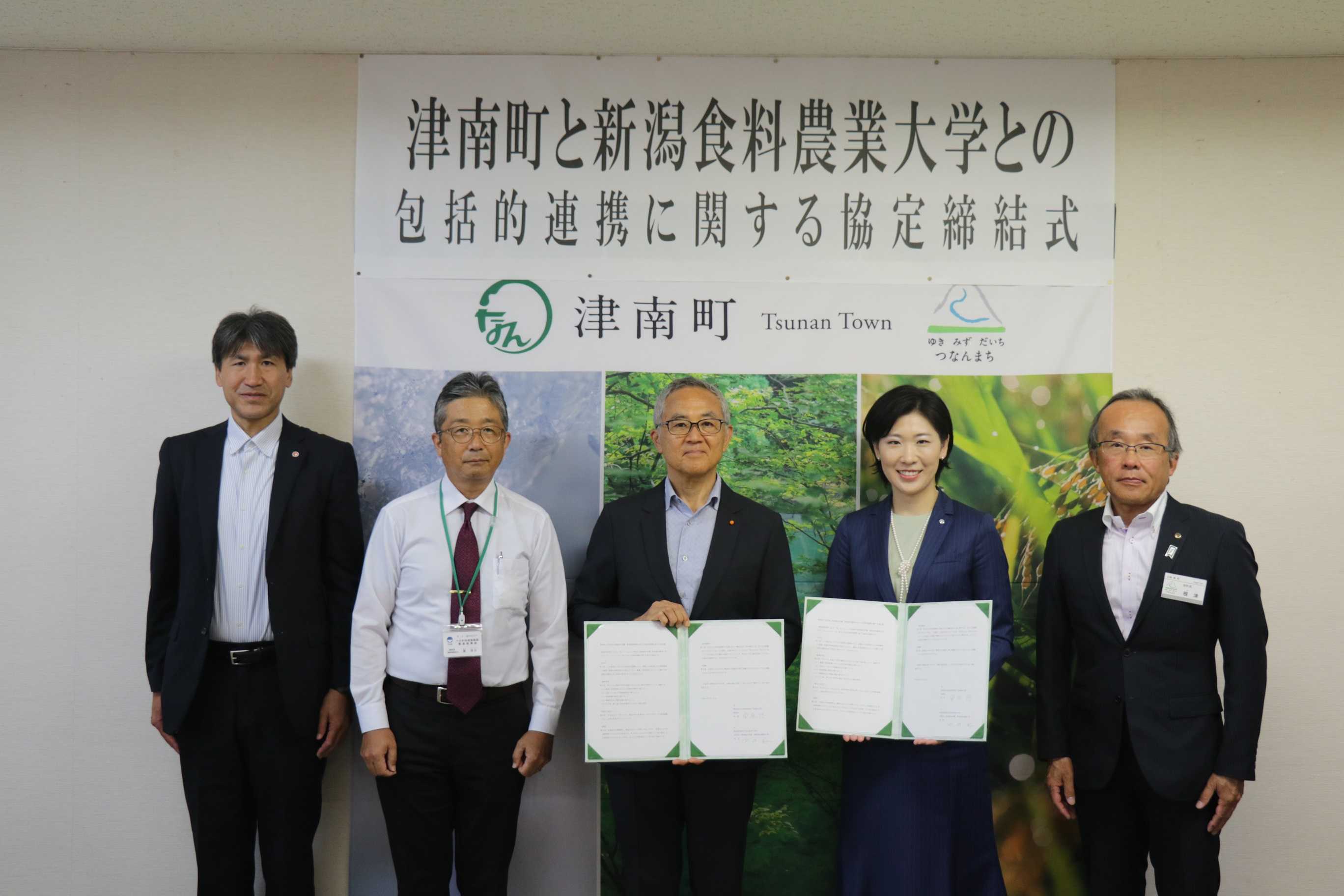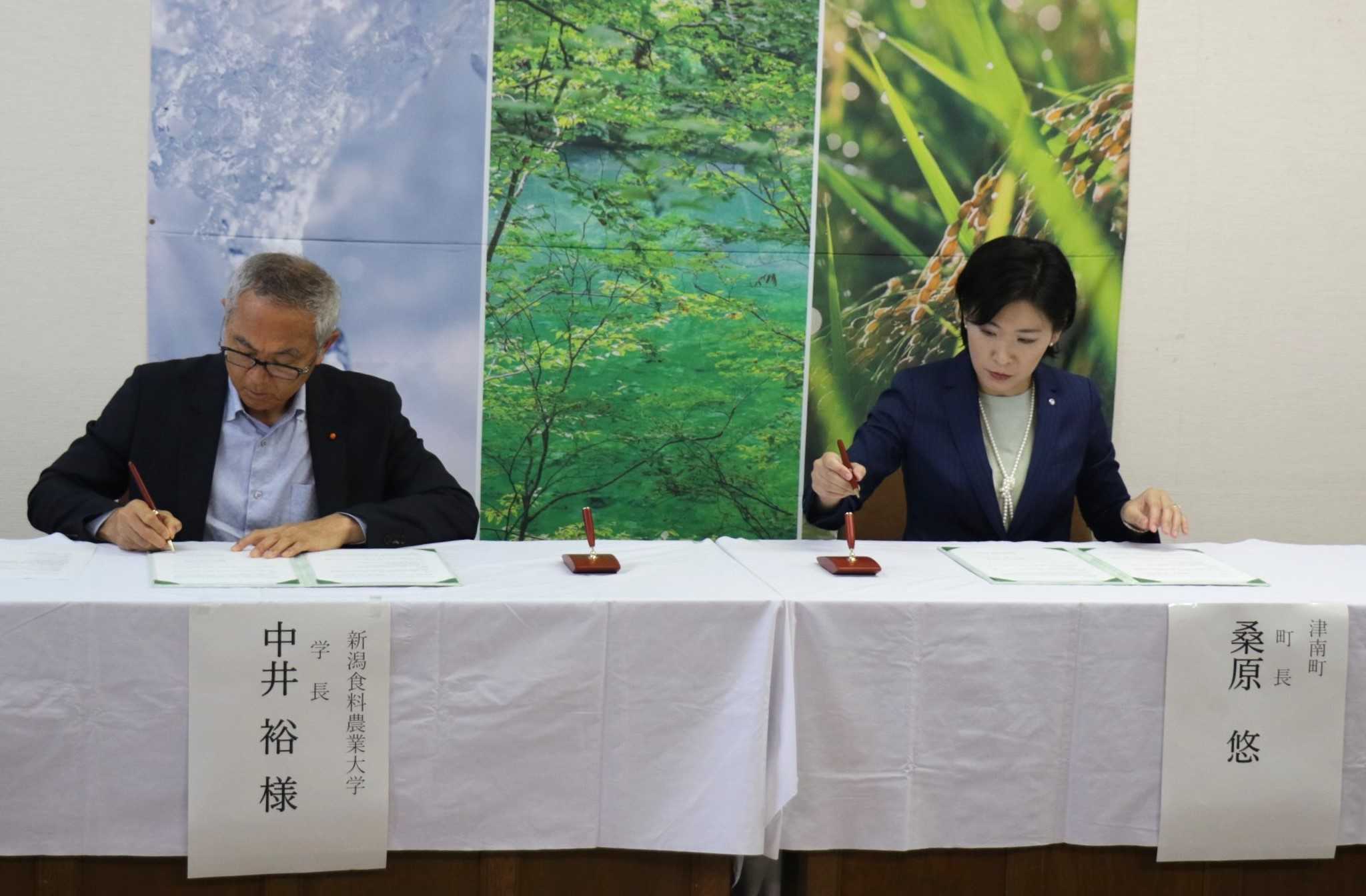 本学は津南町と「農業を通じた多様な人材育成や地域活性化に関し、相互に連携・協力していくこと」に合意し、7月23日(火)津南町役場にて締結式を執り行いました。