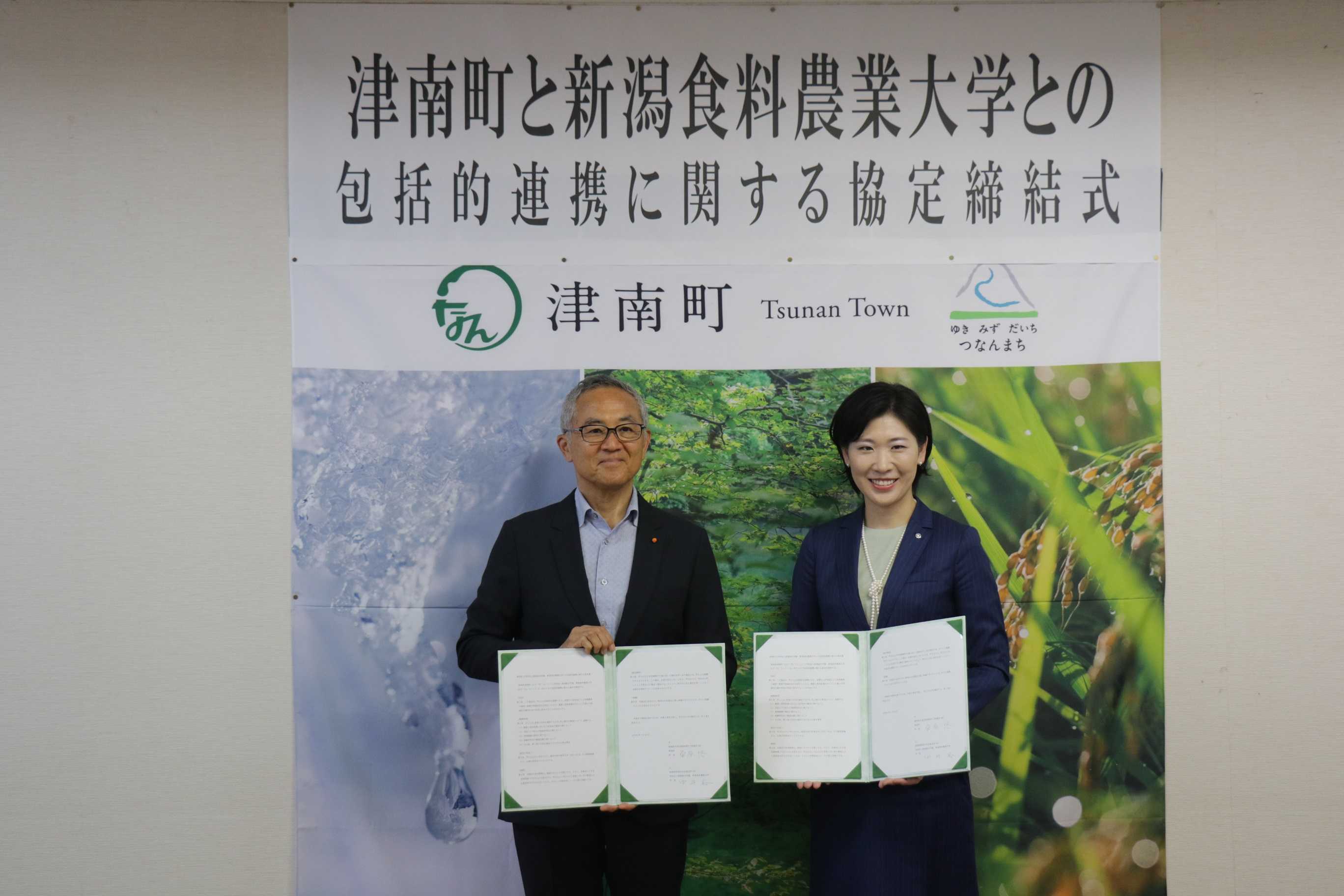 津南町と新潟食料農業大学の包括連携協定締結式を執り行いました