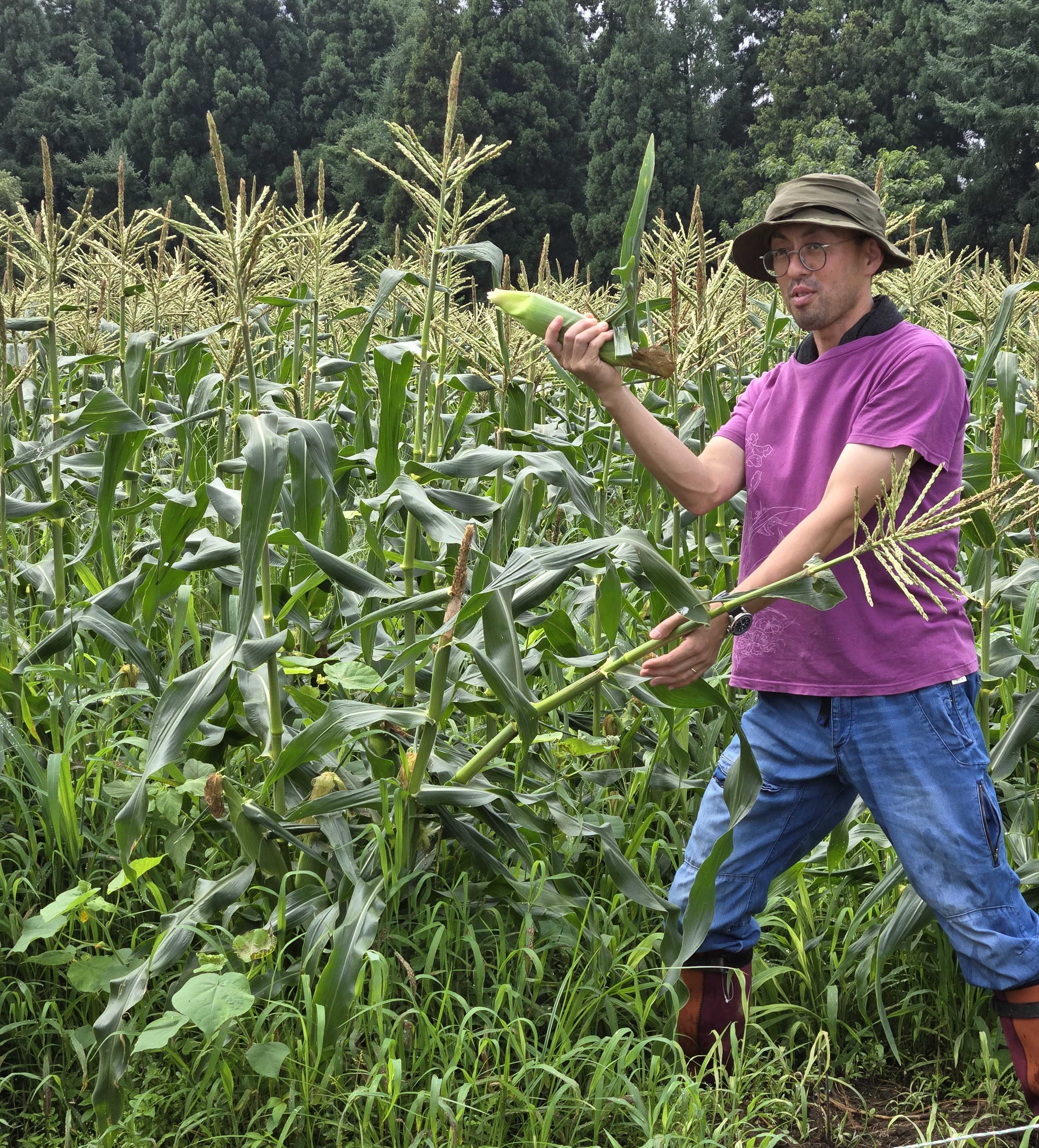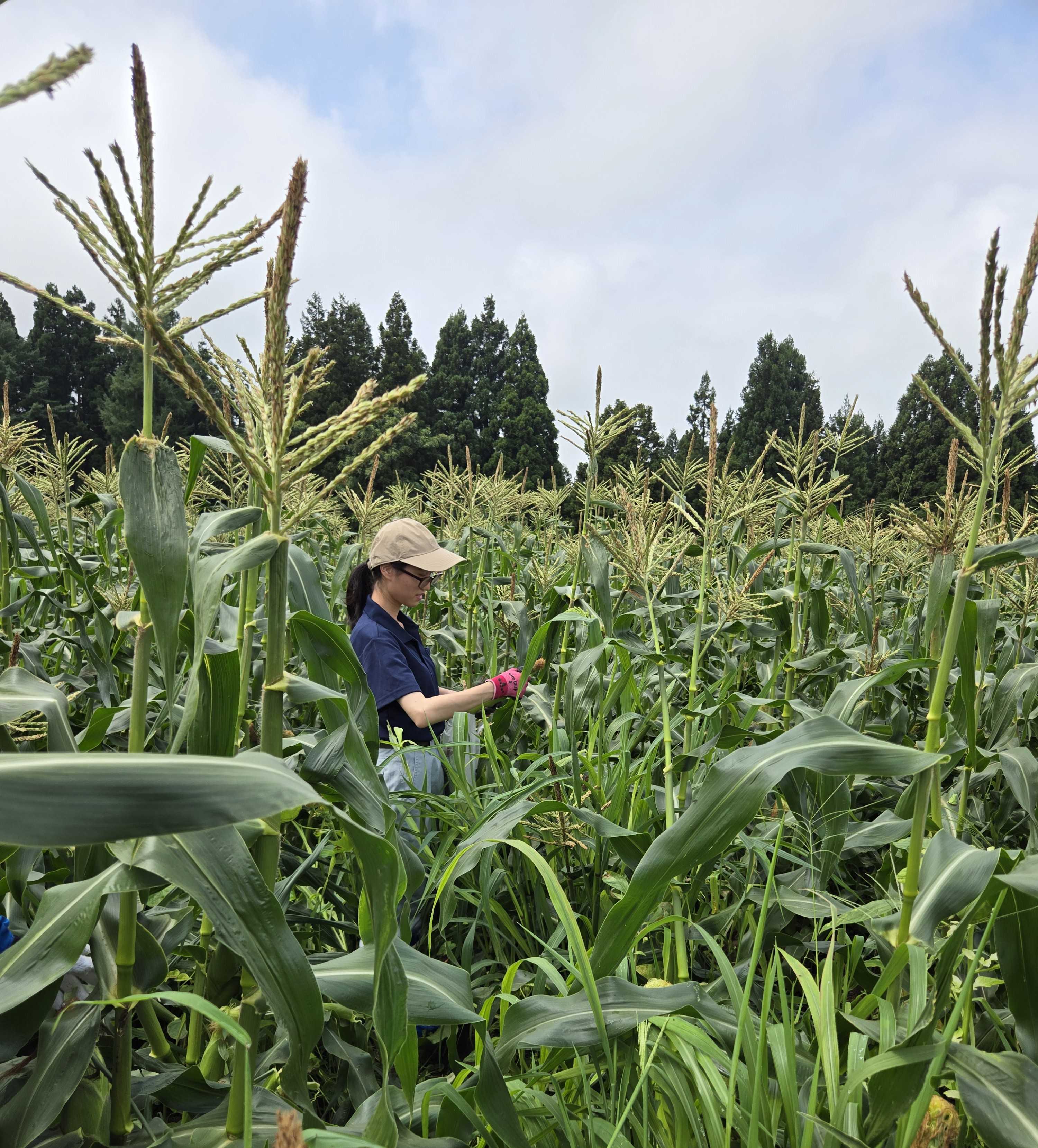 最初に訪れたのは、県外からも人気の高いブランドスイートコーン【鬼もろこし】の収穫体験。