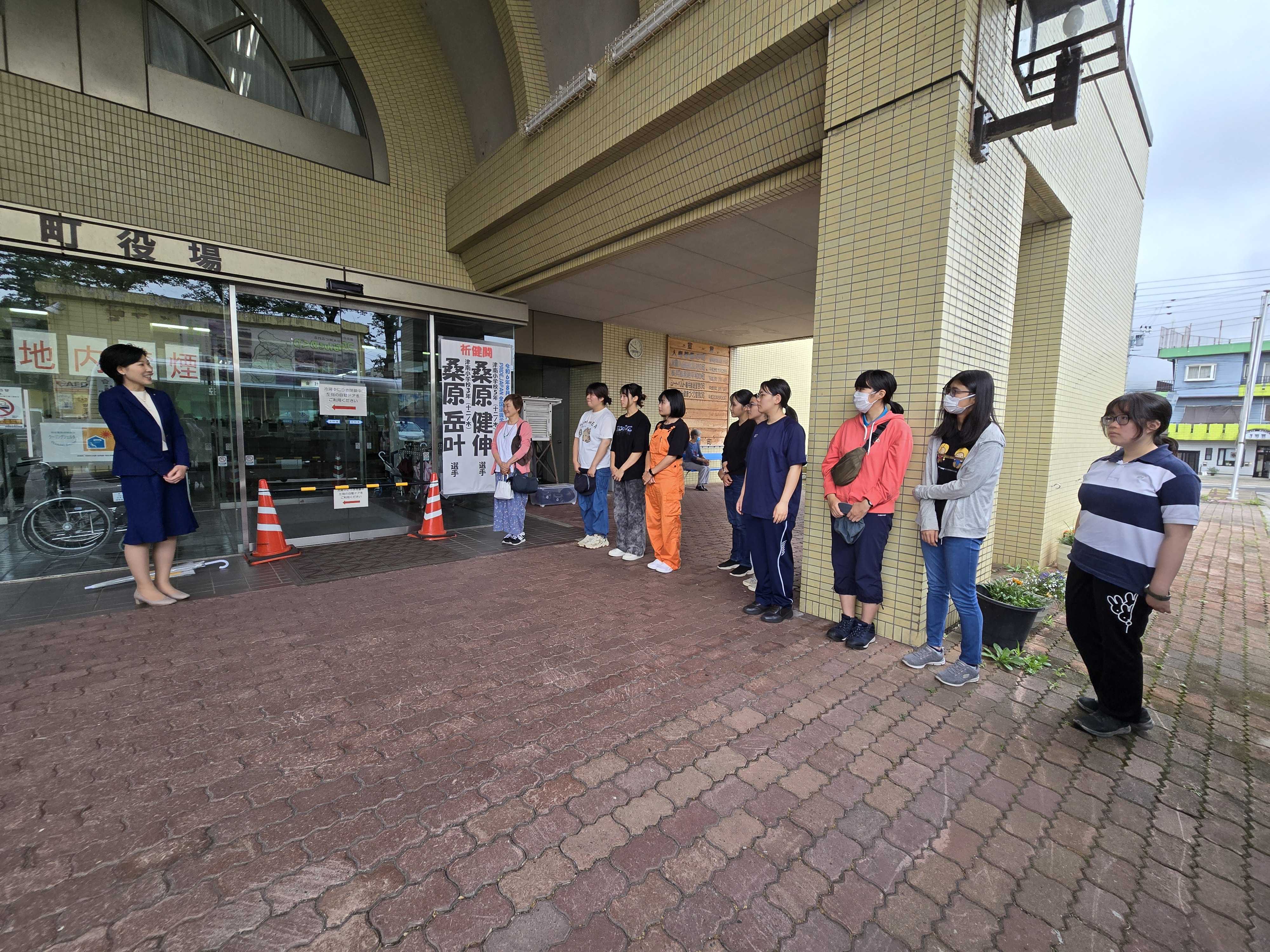 津南町役場に到着した一行は、桑原町長に出迎えていただき、出発式の後、早速ツアー開始!!