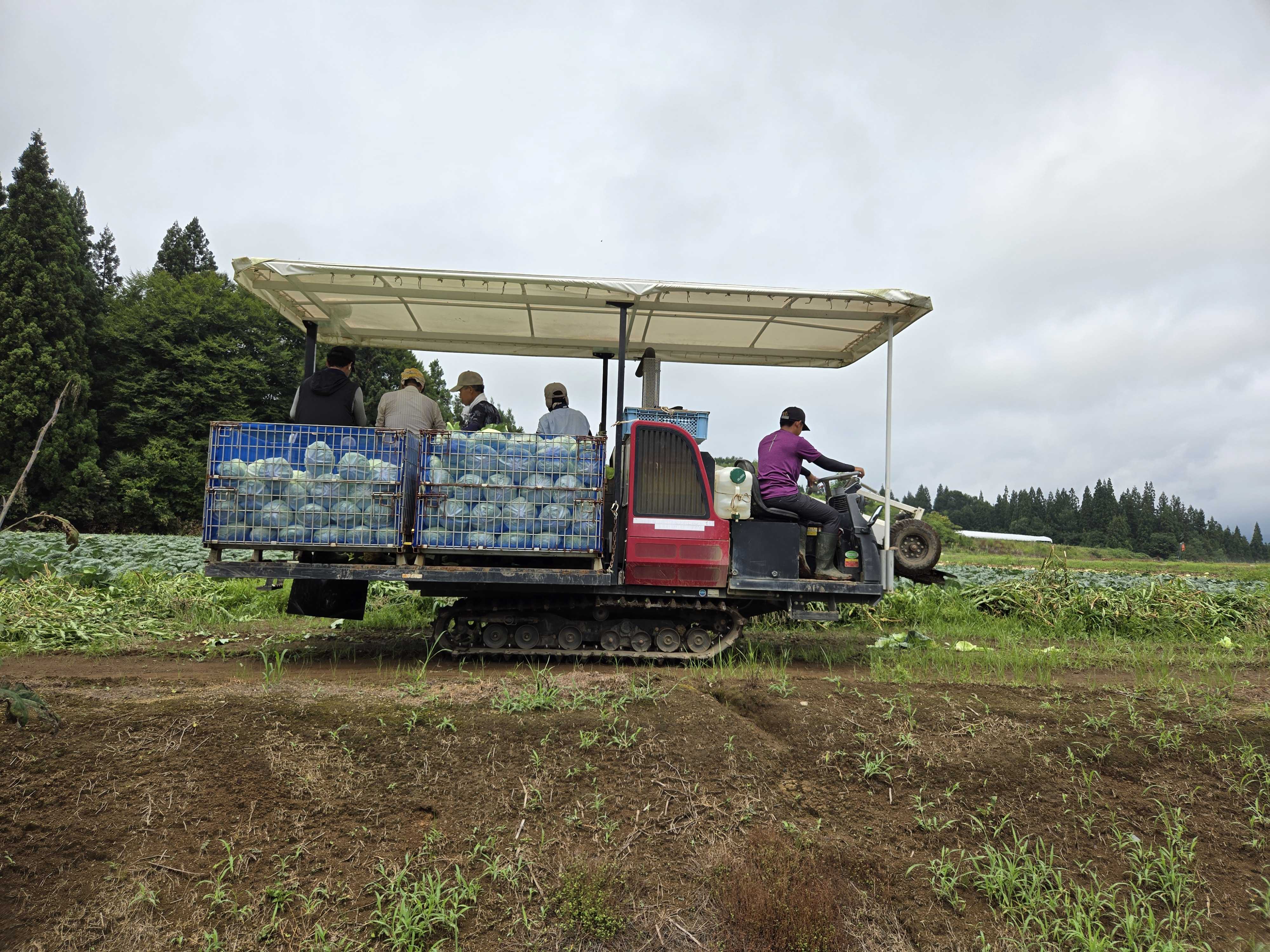 株式会社津南アグリでは、3年前から収穫機によるキャベツの収穫を行い、省力化や生産性向上を図っているそうです。