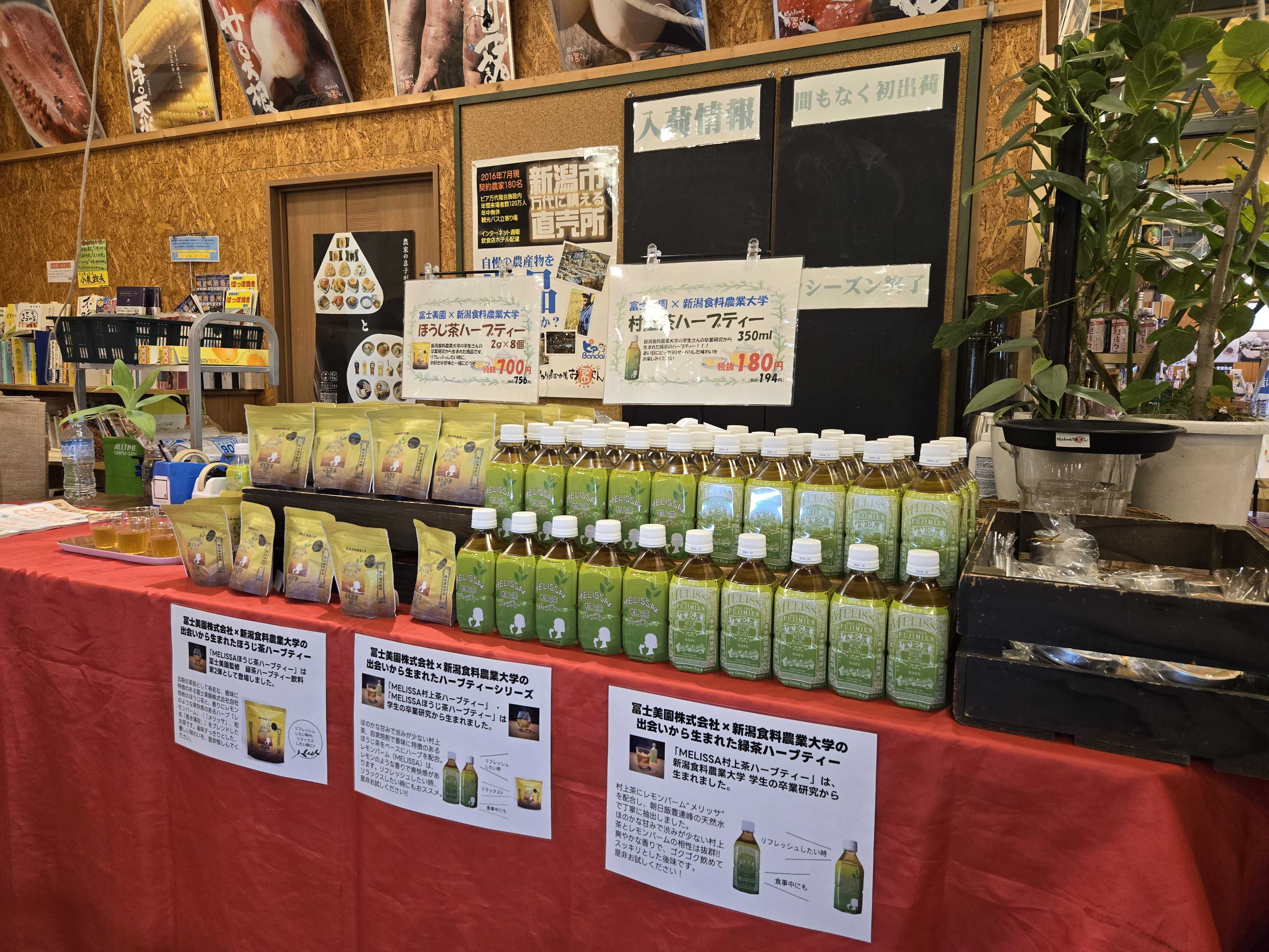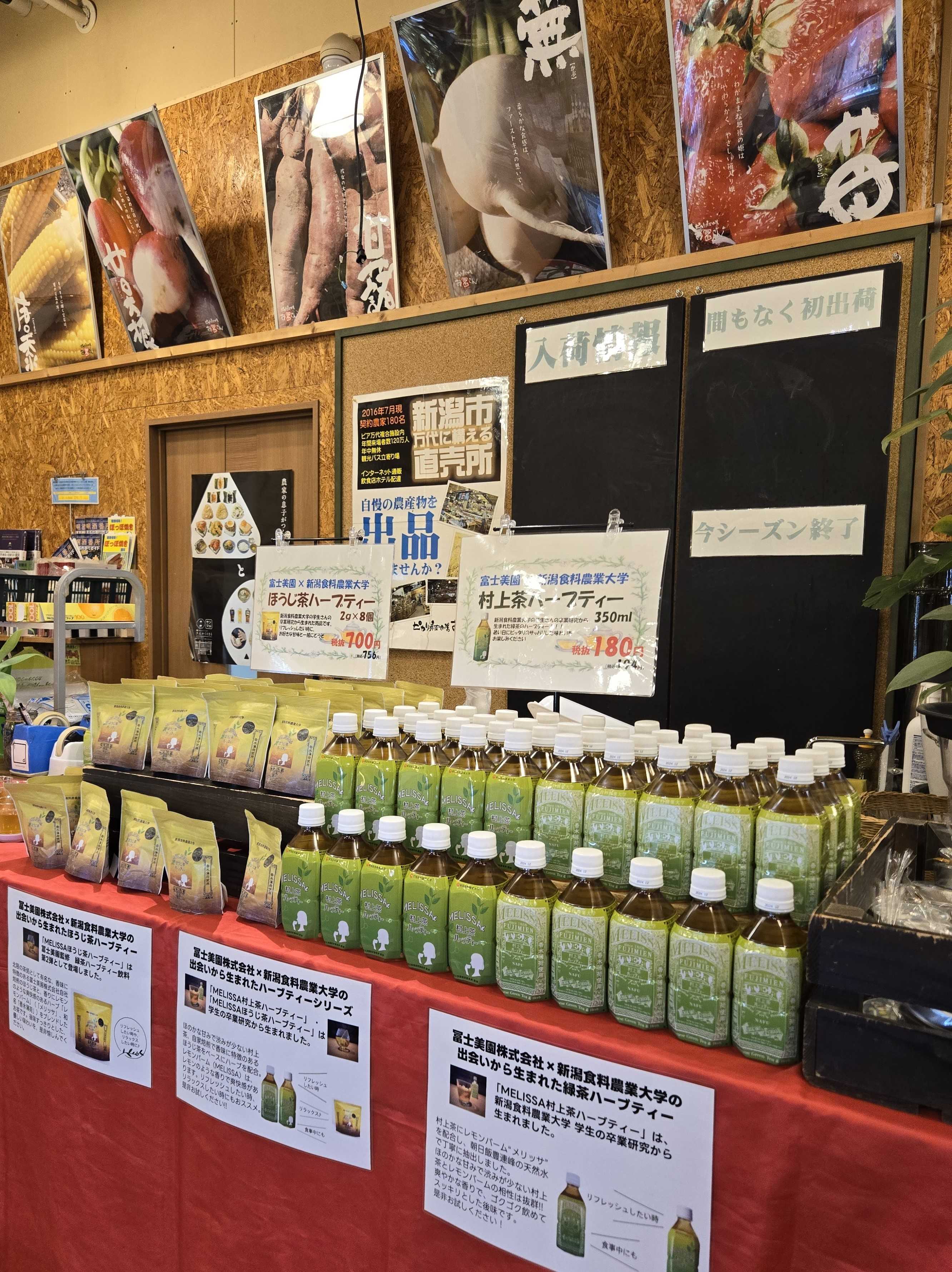 『MELISSA村上茶ハーブティー』シリーズは、冨士美園(村上市)をはじめ、ピアBandaiピカリ産直市場お冨さん、新潟空港、ウオロク中条店、胎内市役所、道の駅加治川にて販売中です。
